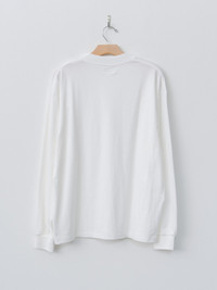 The Suvin Supima Tube L/S Tee Light is a loose fit longsleeve crewneck tee with a seamless body and neckline. It is made from a lightweight jersey using a blend of extra-long-staple Suvin and Supima cotton, resulting in a smooth texture and subtle luster. - Made in Japan - 100% Cotton - Available in White, Feather Gray, Navy, Black - The model is 6'1"/185cm and wears size 4/L