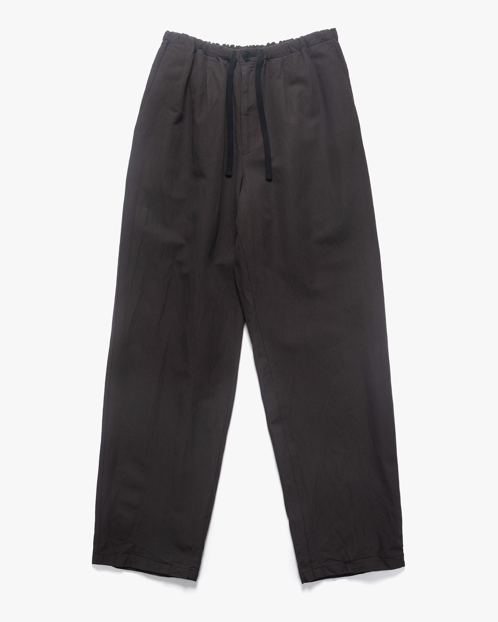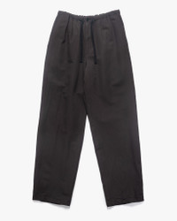 KAPTAIN SUNSHINE reinterprets relaxed tailoring with the Walk Easy Trousers, crafted from a lightweight yet structured blend of wool and Japanese paper. The unique fabric composition enhances breathability and durability while offering a crisp drape that holds its shape over time. Designed for effortless wear, the relaxed silhouette is anchored by a comfortable drawstring waist, blending function with refined ease. DETAILS - KS25SPT07 - 65% wool, 35% Japanese paper - Relaxed fit - Adjustable drawstring waist - Button closure - Welt hand pockets - Rear patch pocket - Made in Japan