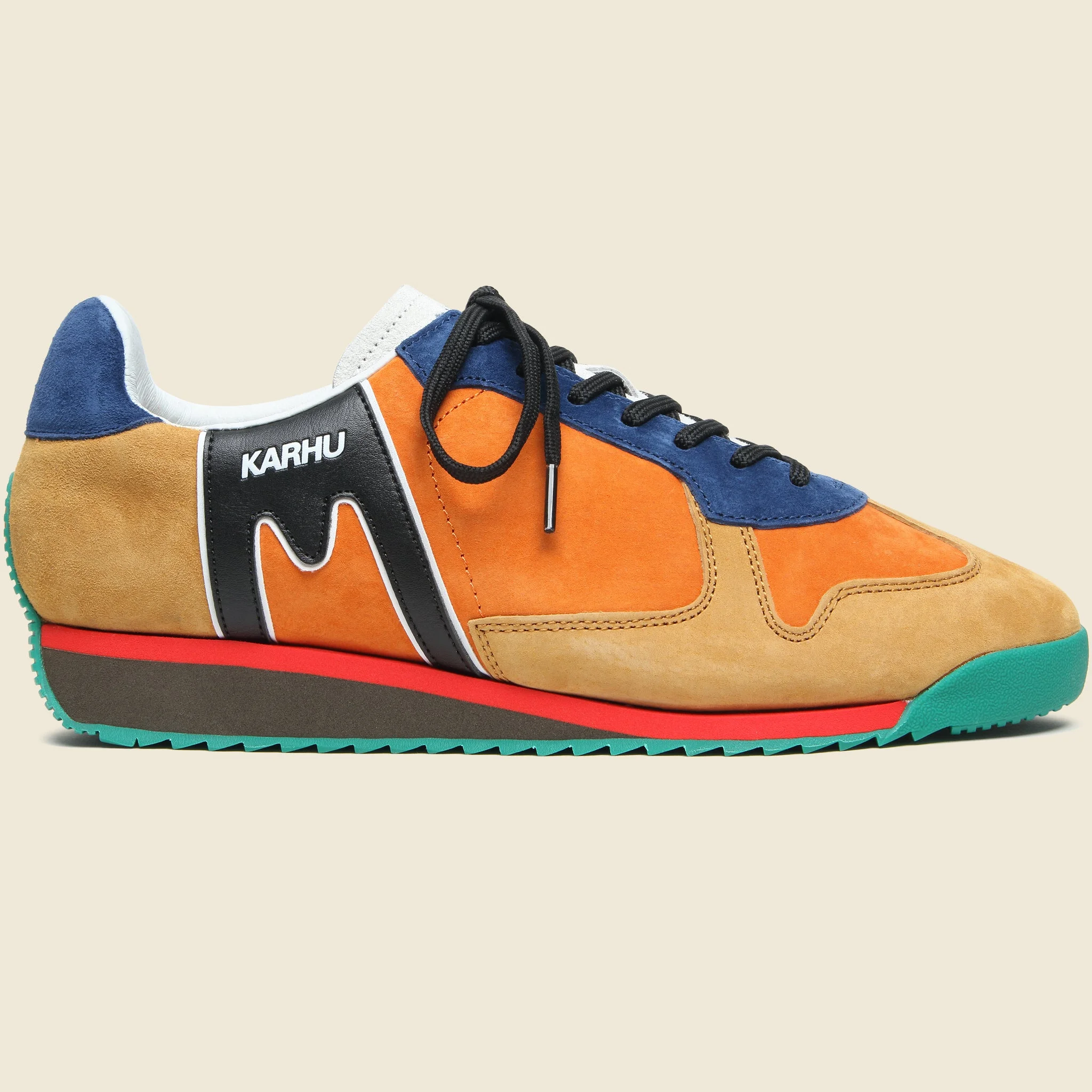 Made in collaboration with Engineered Garments, this exclusive Mestari Sneaker from Karhu features a wild, colorblock pattern to seamlessly combine the brand’s rich heritage with an eye-catching, asymmetric design. They’re constructed with suede overlays and suede and nylon underlays for a striking look, and finished with Karhu’s signature Air Cushion technology for all-day comfort. - Mismatched-style suede overlays - Suede and nylon underlays - Debossed and printed co-branding - Leather ankle lining - Flat laces - Leather-topped foam footbed with arch support - Air Cushion technology - Fit true to size Materials: Leather suede upper, EVA midsole, rubber outsole