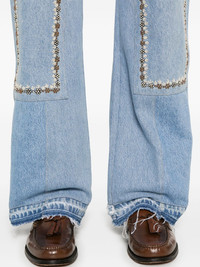 Double Patch Knee jeans Highlights - Blue - Cotton - Denim - Light wash - Patch detail - Front button and zip fastening - Belt loops - Classic five pockets - Floral applique - Frayed hem - Straight leg Imported Composition Cotton 100% SIZE & FIT Model measurements Height 6 ft 2 in(1.87 m) Bust/Chest 37.79 in(96 cm) Hips 37.79 in(96 cm) Waist 30.31 in(77 cm) FittingInformation Designed with a straight leg, these jeans allow for an unrestricted and comfortable fit over the leg Sturdy and hard-wearing, this denim piece offers no stretch Washing instructions Dry Clean Only