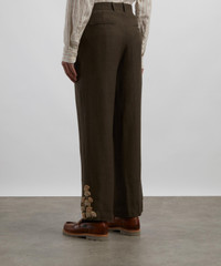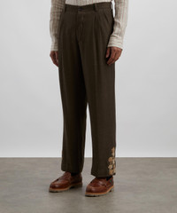 Khaki Double Pleat Hand-Embroidered Trousers