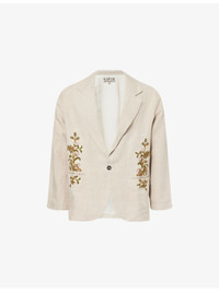 Notched-Lapel Embroidered Linen Blazer