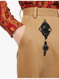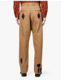PRODUCT DETAILS - Kartik Research denim trousers - 100% cotton - Button, hook-and-eye and zip-fly fastening - Regular fit, mid-rise, straight leg, structured waistband with belt loops, slip pockets at front, contrast bead embroidery at front and back, pockets at back, twill texture - Dry clean - Made in India - Size medium: rise 13.5in / 34cm, inside leg 31in / 79cm, leg opening 19in / 48cm - Model is 6ft 2in/1.88m and wears a size medium - Midweight, non-stretch Ref: R04549655