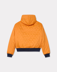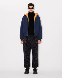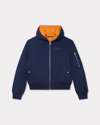 'KENZO Archive 1970' bomber. Reversible. Ribs on bottom and cuffs. Navy side : Light Brushed Heavy Molleton. Two front snap pockets and one zipped gusset pocket on left sleeve. Orange side : Stitched lightly padded nylon. Product Reference: FE65BL1994ME.77 SIZE & FIT The model is 185 cm tall and is wearing size M. COMPOSITION & CARE Made in Portugal 99% cotton, 1% elastane Do not bleach Do not dry-clean Iron at low temperature Flat drying Do not tumble dry Hand wash Very mild professional wet-cleaning