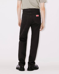 Nigo drew inspiration from classic straight jeans for these Japanese Kaihara denim trousers which showcase his favourite workwear style. With buttons and a paper KENZO Paris jacron, this piece embodies the House aesthetic perfectly. Pair it with a polo or button-down shirt and derby shoes for a stylish, on-trend casual look. Straight jeans made of Japanese Kaihara denim. Belt loops. 2 side pockets, 1 ticket pocket, 2 back pockets. KENZO Paris paper jacron on the back pocket. KENZO Paris buttons. Zip and button fastening at the front. Product Reference: FD65DP3316A1.DM SIZE & FIT Straight cut.Leg length: 113 cm. The model is 187 cm tall and wears a size M. COMPOSITION & CARE Made in Tunisia 100% cotton Do not bleach Mild professional dry-cleaning in: hydrocarbons Iron at low temperature Line drying in the shade Do not tumble dry 30°C very mild fine wash Mild professional wet-cleaning