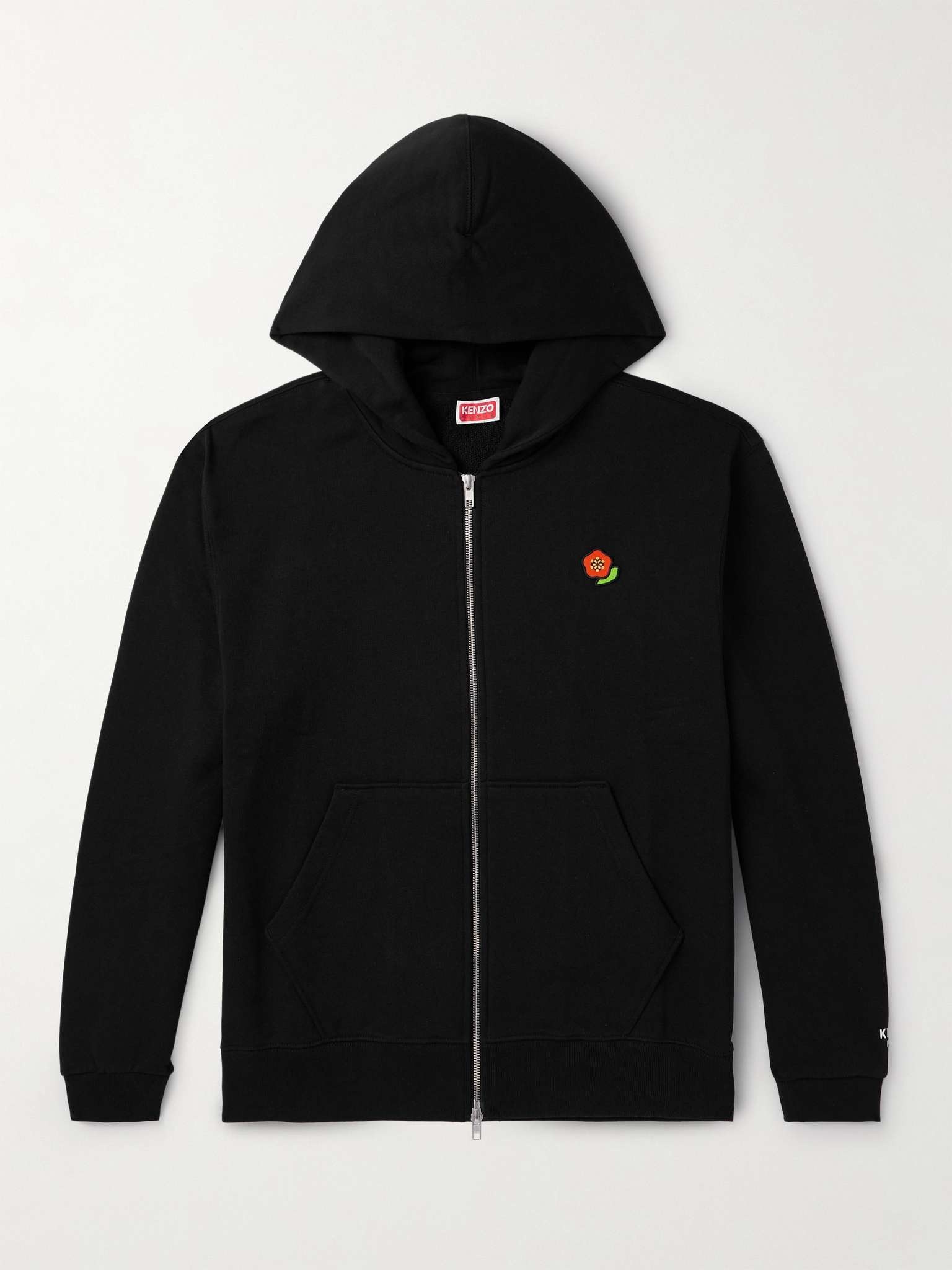 This hoodie is embroidered at the chest with KENZO's 'Pop' floral logo. Made from thick cotton-jersey, it has a silver-tone zip and additional branding on the cuff. Size & Fit - Fits true to size. Take your normal size - Designed for a relaxed fit - Mid-weight, stretchy fabric - Model is shown wearing a M - Model measures: chest 38"/ 96cm, height 6'0"/ 183cm Details & Care - Black cotton-jersey - Two-way zip fastening - 100% cotton - Machine wash
