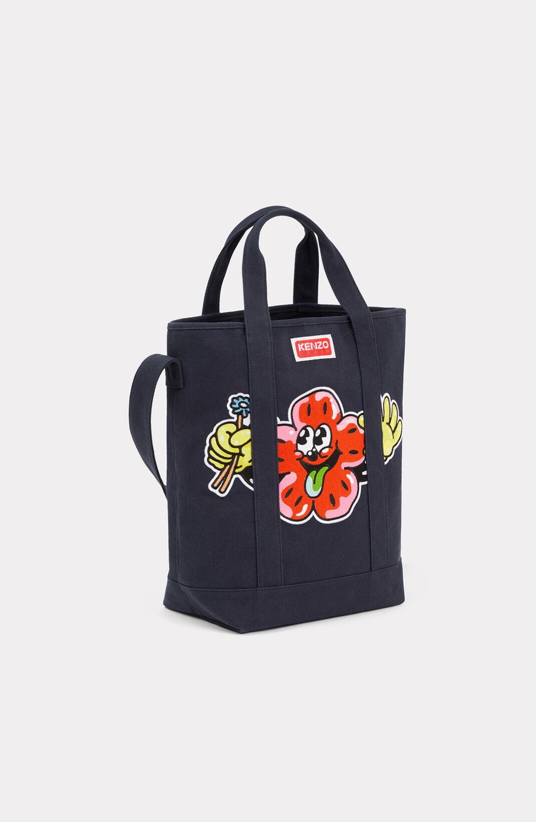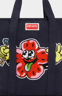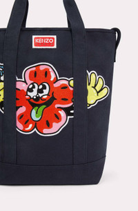 This tote bag presents the emblematic 'BOKE FLOWER' design from Nigo's first collection, in a cartoon style. The fun logo at the back adds an extra touch of novelty. Carry it by hand, over your shoulder or cross-body style depending on your mood. Canvas tote bag. 'BOKE Boy' patch at the front. KENZO embroidery at the back. KENZO labels at the front and inside. 1 large main compartment, 1 flat inside pocket and 1 flat back pocket. 2 handles. Hook fastening. COMPOSITION & CARE Made in China 100% cotton