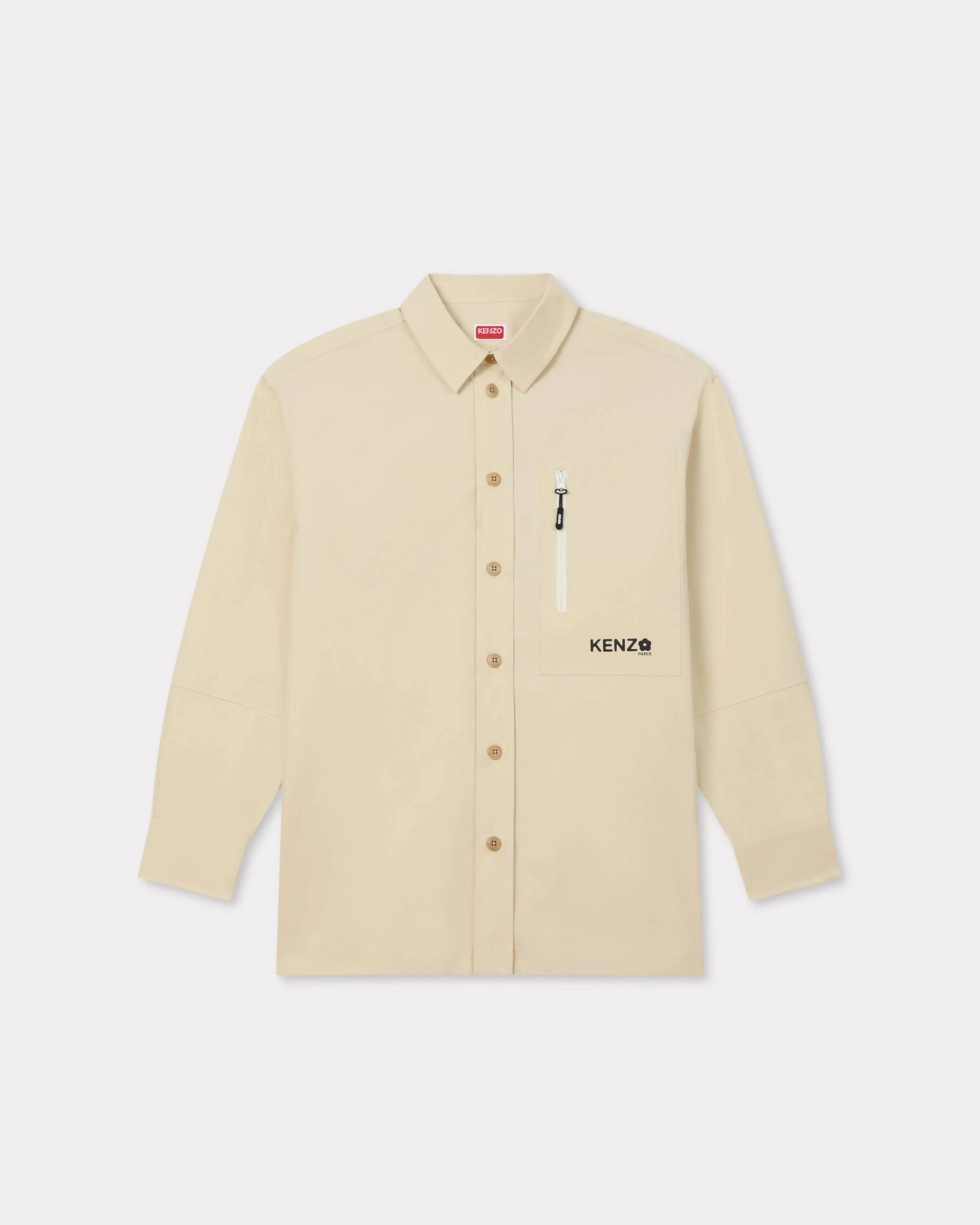 'Boke Flower 2.0' oversized shirt in technical cotton. Heavy cotton poplin. Silicon pullers. Zipped pocket. Specific cuts. One chest zipped pocket. Product Reference: FF55CH5049LP.04 SIZE & FIT The model is 185 cm tall and is wearing a size M. Back length at 82 cm. Oversize fit. COMPOSITION & CARE Made in Tunisia 100% cotton Do not bleach Mild professional dry-cleaning in: hydrocarbons Iron at low temperature Line drying in the shade Do not tumble dry 30°C very mild fine wash Very mild professional wet-cleaning
