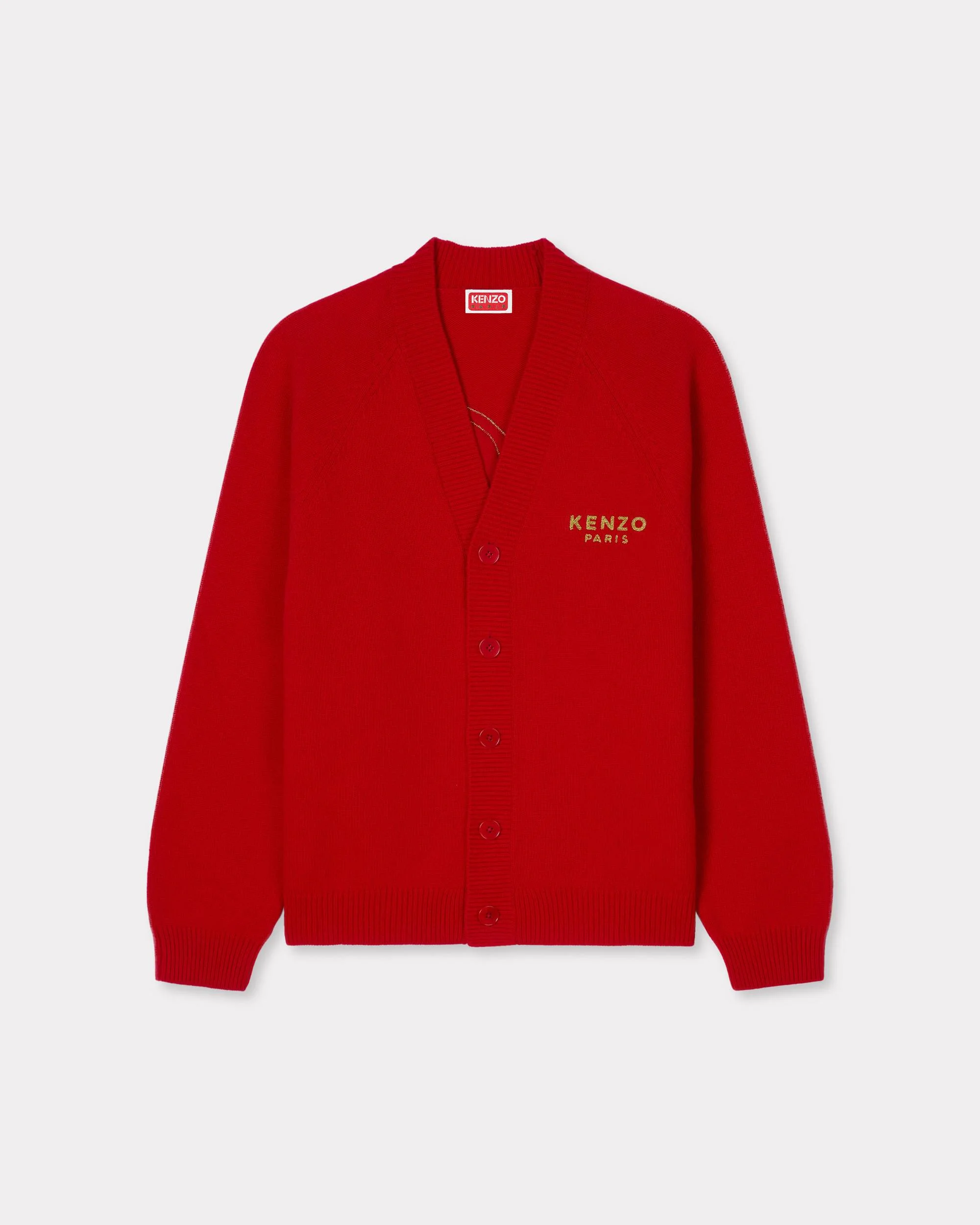 'Boke Flower' cardigan. Wool. Tone on tone branded buttons. ‘KENZO Paris’ branding embroidered on the chest. ‘Boke Flower’ as a gold outline. Product Reference: FG55CA7773DA.22 SIZE & FIT The model is 185 cm tall and is wearing size M. Classic fit. COMPOSITION & CARE Made in China 100% wool Do not bleach Mild professional dry-cleaning in: hydrocarbons Iron at low temperature Flat drying in the shade Do not tumble dry 30°C very mild fine wash Very mild professional wet-cleaning