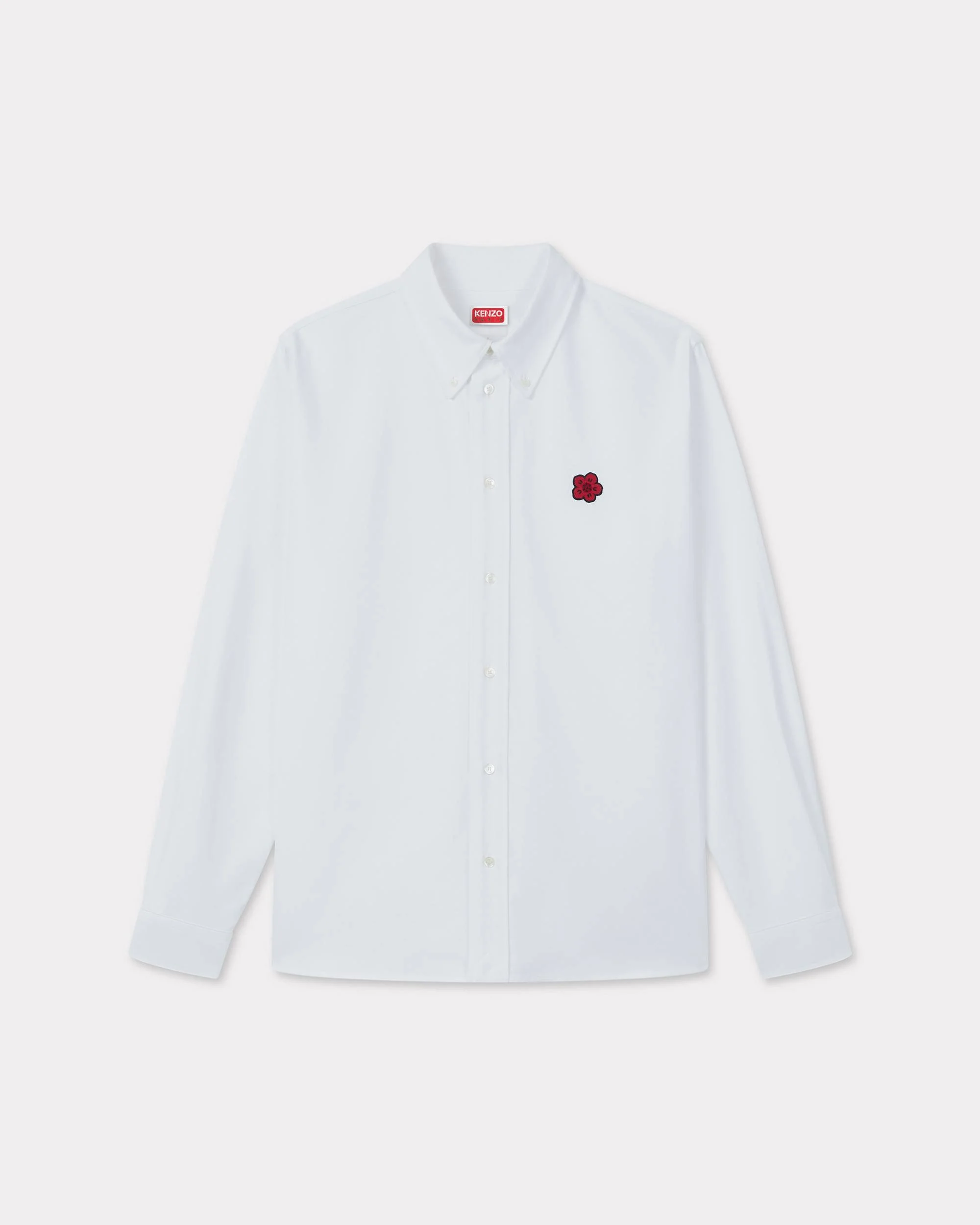 'Boke Flower' casual shirt. Cotton poplin. Boke Flower embroidery at chest. 'KENZO Paris' signature on the back neck. Button-down collar. Product Reference: FE65CH4109LI.01 SIZE & FIT Casual fit. Back length at 75 cm. The model is 185 cm tall and is wearing size M. COMPOSITION & CARE Made in Tunisia 100% cotton Do not bleach Mild professional dry-cleaning in: hydrocarbons Iron at low temperature Line drying in the shade Do not tumble dry 30°C very mild fine wash Very mild professional wet-cleaning