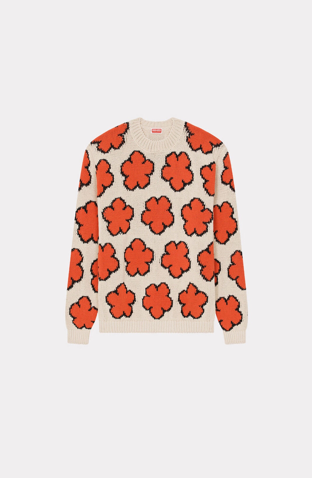 This jacquard and intarsia jumper by Nigo shines a light once again on the 'BOKE Flower'. The relaxed cut with dropped shoulders embodies a young, comfortable style that can be worn from spring into summer. Long-sleeved jumper. Dropped shoulders. Round neck. 'BOKE Flower' intarsia and jacquard all-over motif. KENZO Paris label on the back. Ribbed finishes. SIZE & FIT Casual cut. COMPOSITION & CARE Made in Italy 100% cotton
