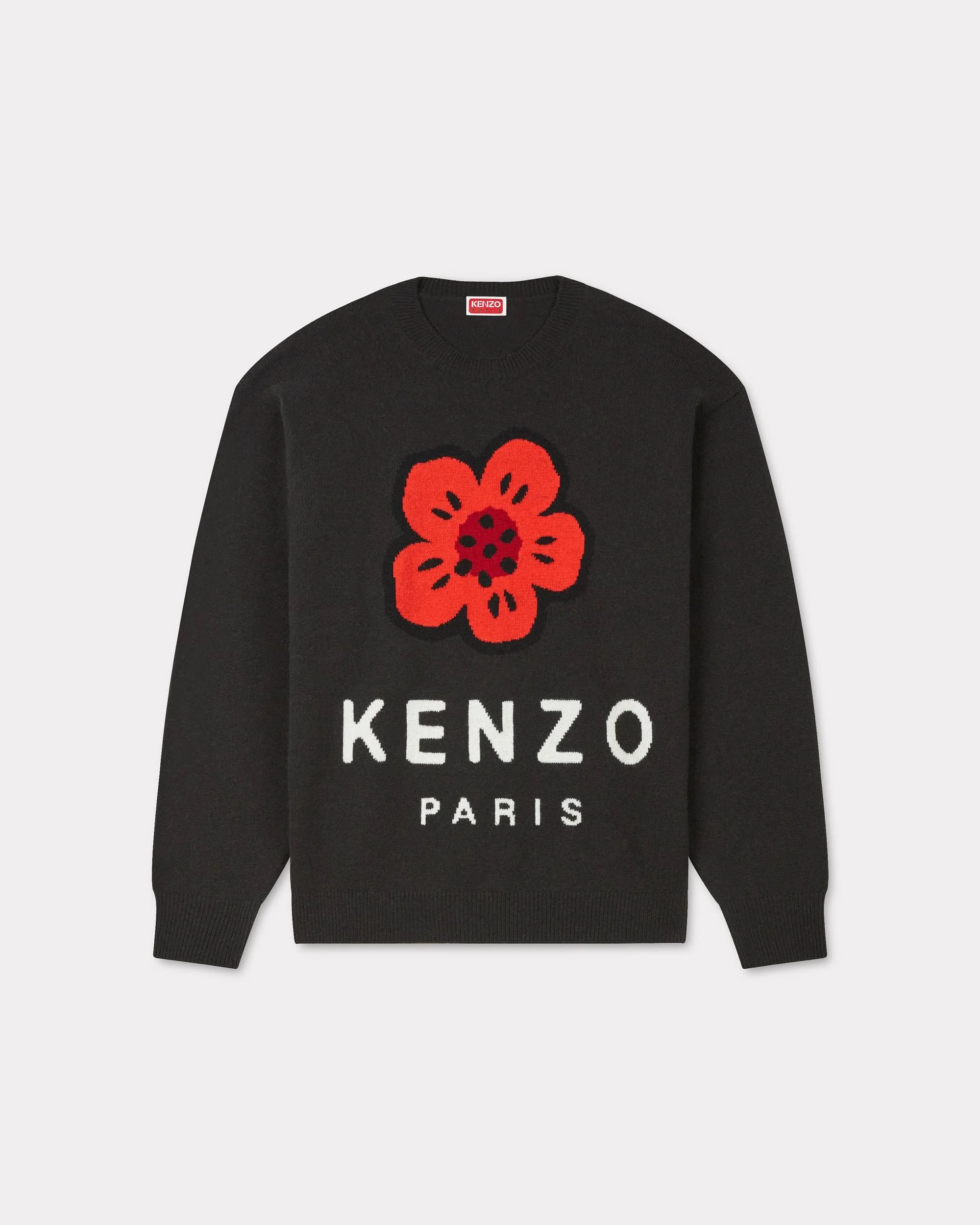 'Boke Flower' jumper. 'Boke Flower' motif and KENZO Paris logo knitted in intarsia on the front. Product Reference: FE65PU4873LD.99J SIZE & FIT Relax fit. The male model is 185 cm tall and is wearing size M. COMPOSITION & CARE Made in China 100% wool Do not bleach Mild professional dry-cleaning in: hydrocarbons Iron at low temperature Flat drying in the shade Do not tumble dry Hand wash Very mild professional wet-cleaning