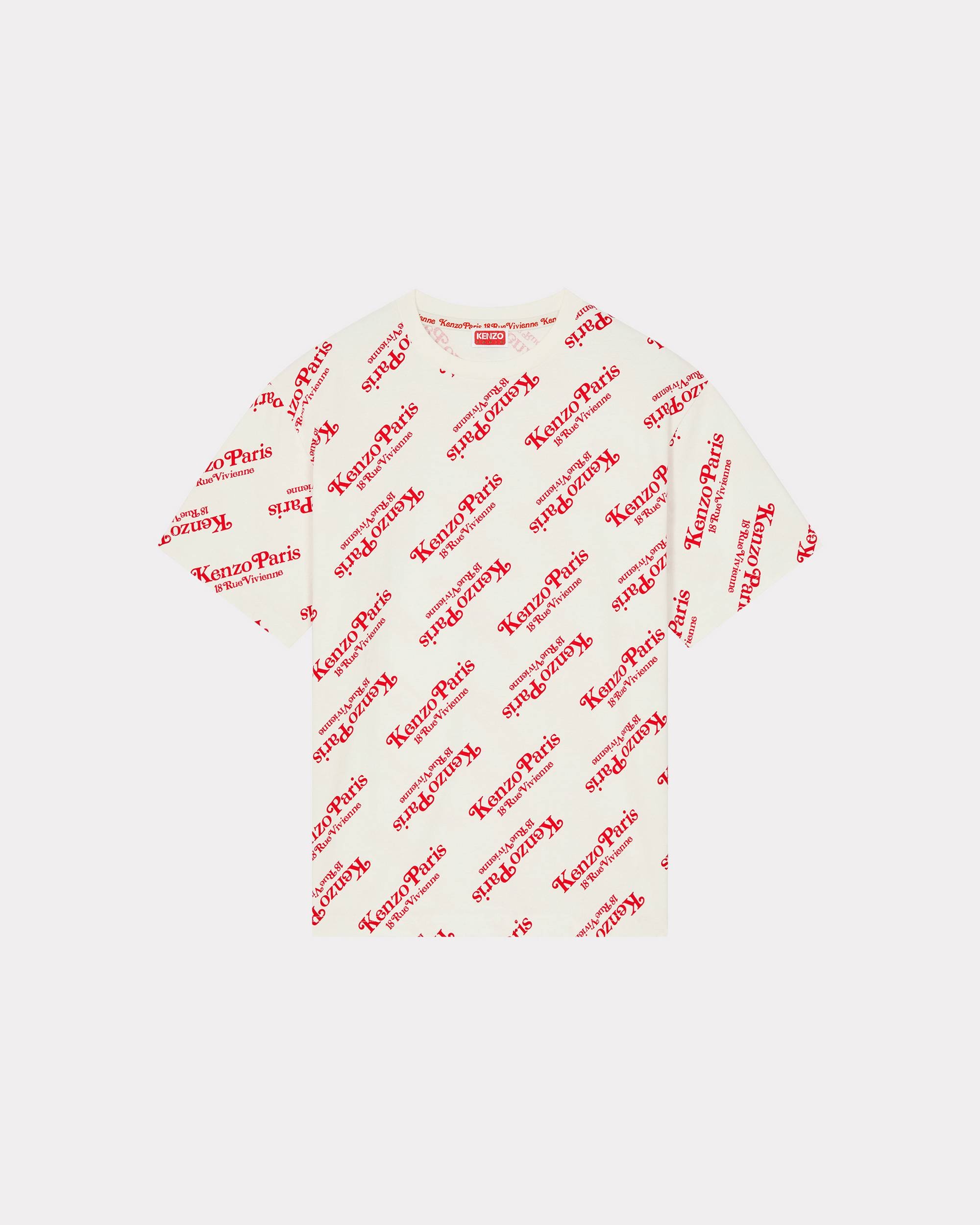 This T-shirt is an iconic piece from the 'KENZO by Verdy' collection. It is printed all over with the 'KENZO Paris 18 rue Vivienne' monogram motif, representing the collaboration between the brand and the Tokyo designer. The oversize cut lends a streetwear edge to this T-shirt, guaranteed to become a go-to favourite. We like the jersey composition, one of Nigo's preferred fabrics. 'KENZO by Verdy' oversize T-shirt. Unisex. Short sleeves. Round neck. All-over 'KENZO Paris 18 rue Vivienne' monogram print. Unique branded neck tape ‘Kenzo Paris 18 rue Vivienne’. SIZE & FIT Oversize cut.The female model is 175 cm tall and wears a size S.The male model is 185 cm tall and wears a size M. COMPOSITION & CARE Made in Portugal 100% cotton, 100% cotton