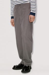 These cargo jogging trousers are a perfect example of Nigo's "real-to-wear" philosophy. The relaxed fit and large pockets will add volume to everyday streetwear looks. Emphasize the vintage style by pairing these trousers with a 'KENZO Sailor' striped T-shirt. Cargo-style jogging trousers. Super-soft material. Side seam pockets. 3 buttoned pockets: 2 large ones on the sides and 1 on the back. KENZO Paris label on the back pocket. Elastic waist with a drawstring. COMPOSITION & CARE Made in Romania 100% cotton