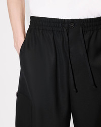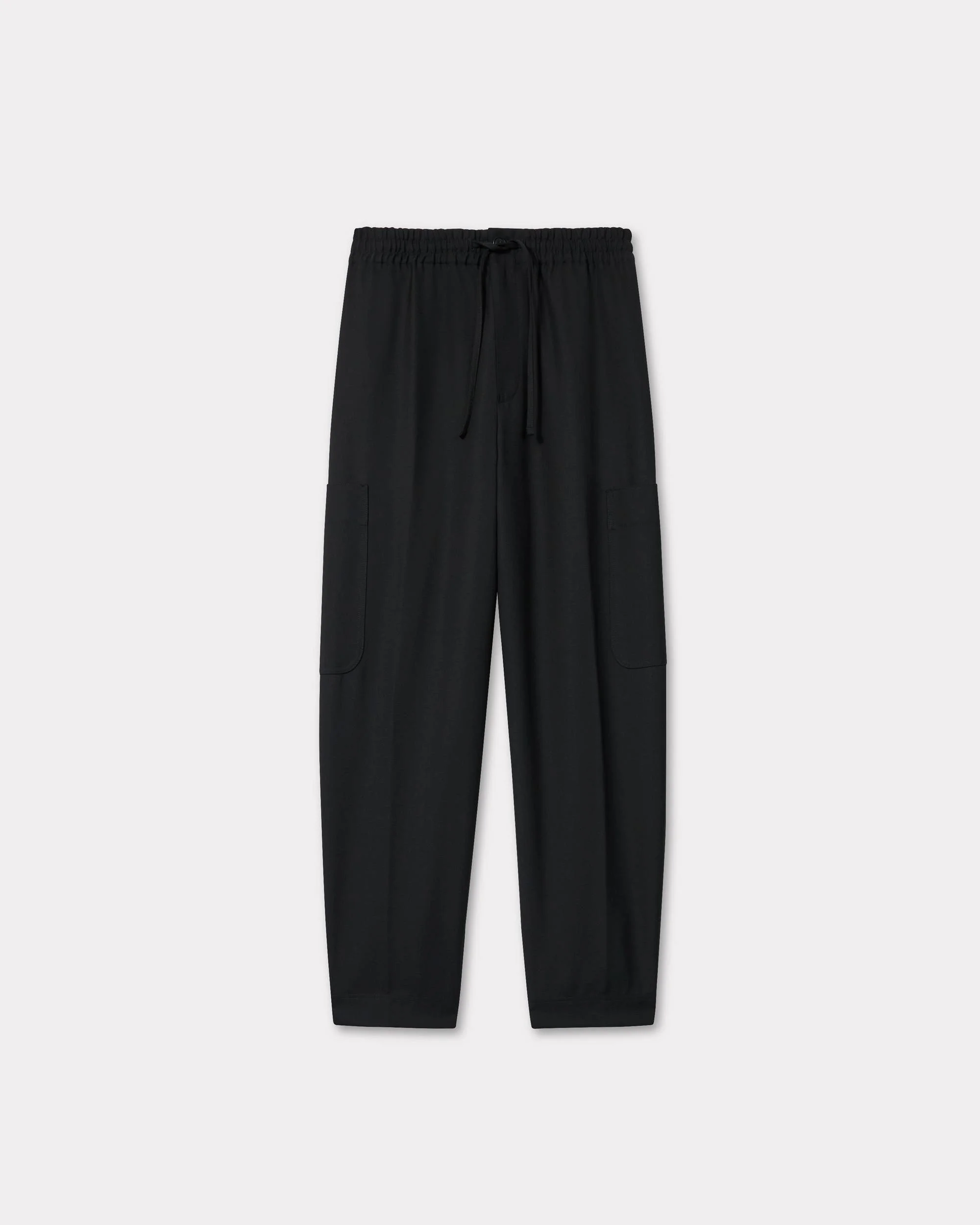 Cargo jogpants. 'KENZO Paris' label on the back. Boke Flower buttons on each pockets. Fluid wool fabric. Elasticated belt with drawstring and button opening. Two side pockets and one back pocket. Product Reference: FE65PA5019RE.99 SIZE & FIT Loose fit. Leg length at 108 cm. The model is 185 cm tall and is wearing size M. COMPOSITION & CARE Made in Romania 100% virgin wool Do not bleach Mild professional dry-cleaning in: hydrocarbons Iron at low temperature Line drying in the shade Do not tumble dry Do not wash Do not wet-clean