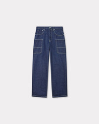 Cargo monkey fit jeans. KENZO Paris leather jacron on the back. Kaihara Japanese denim. Two front pockets. Two side pockets. Two buttoned back pockets. Product Reference: FE65DP4086A1.DM SIZE & FIT Loose Cargo Monkey fit. Leg length at 105 cm. The model is 185 cm tall and is wearing size M. COMPOSITION & CARE Made in Tunisia 100% cotton Do not bleach Mild professional dry-cleaning in: hydrocarbons Iron at low temperature Line drying in the shade Do not tumble dry 30°C very mild fine wash Very mild professional wet-cleaning