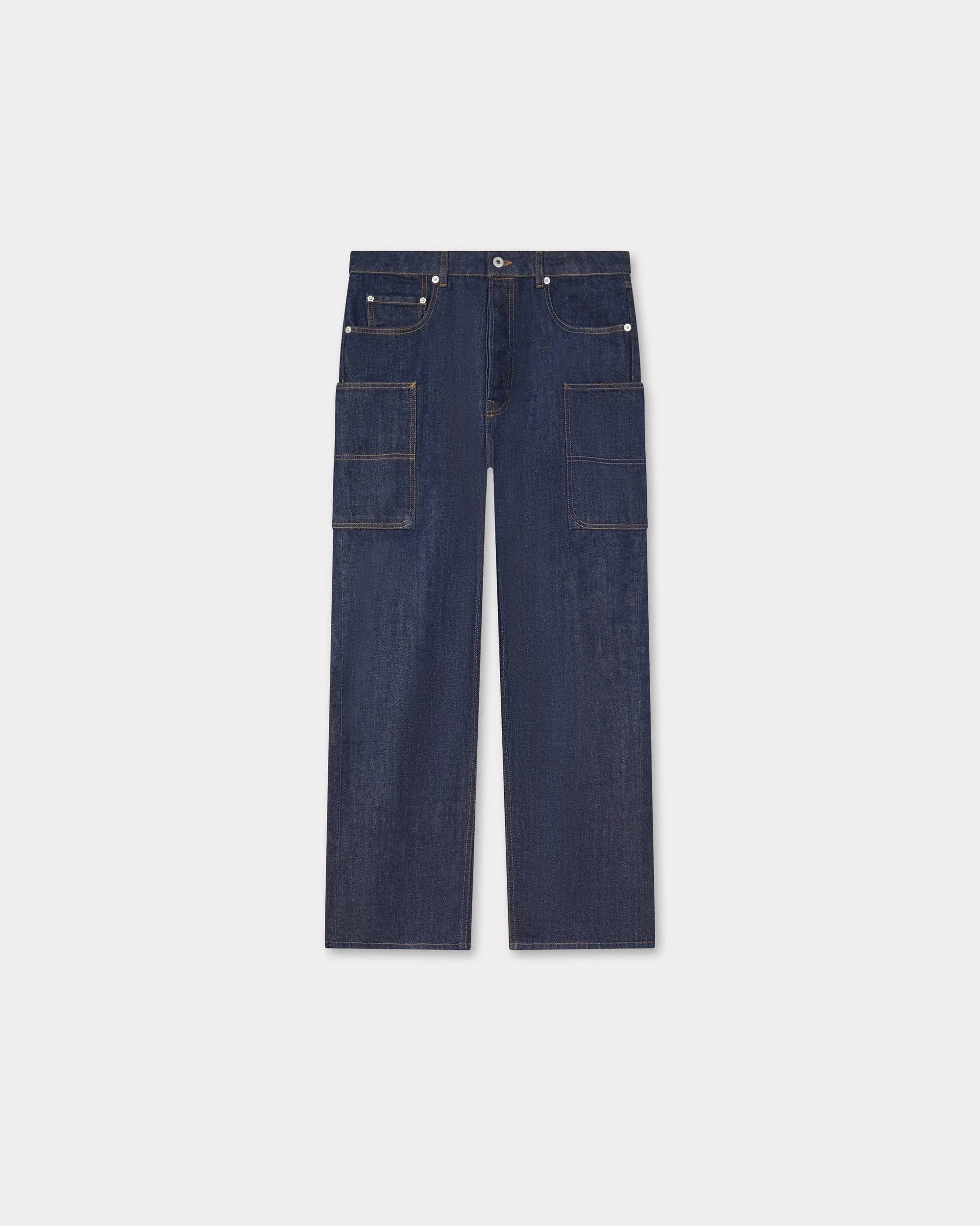 Cargo monkey fit jeans. Rinse Denim. Kuroki Japanese denim. 'KENZO Paris' leather jacron on the back. Two front pockets. One ticket pocket. Two side pockets. Two back pockets. Product Reference: FF65DP4086I1.DM SIZE & FIT The model is 185 cm tall and is wearing size M. Leg length at 105 cm. Loose fit. COMPOSITION & CARE Made in Tunisia 100% cotton Do not bleach Do not tumble dry Very mild professional wet-cleaning