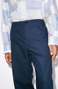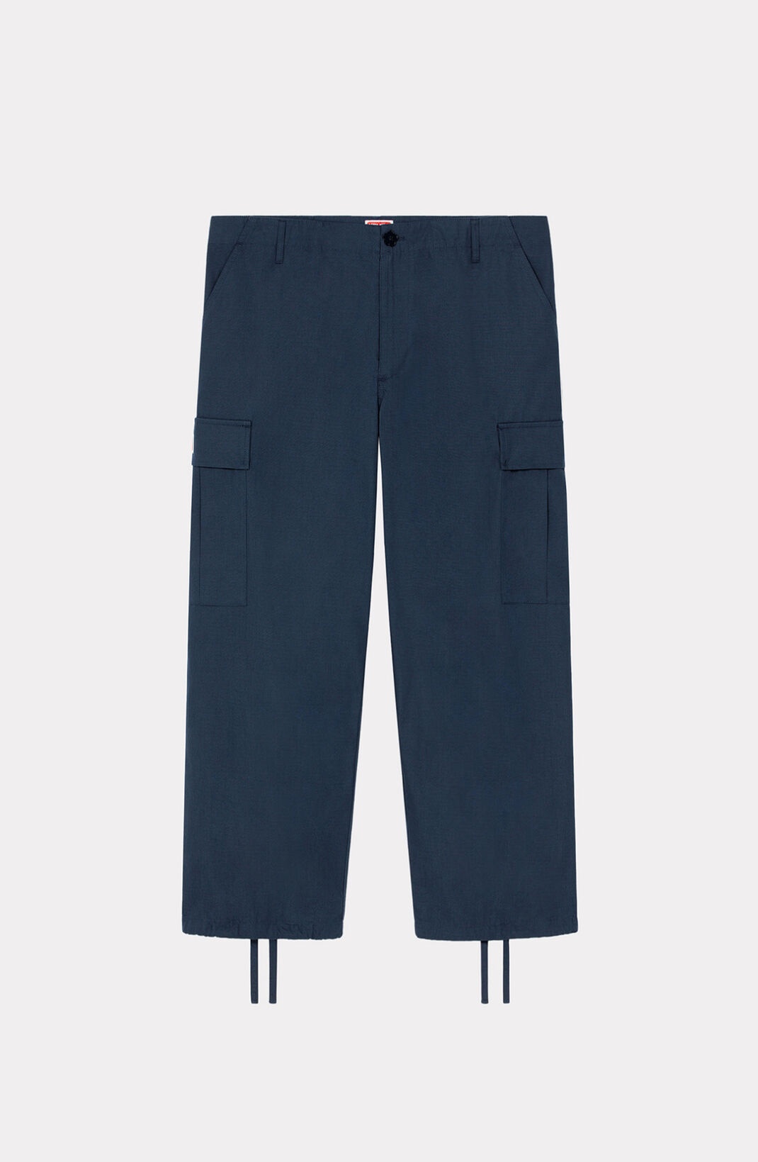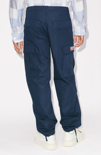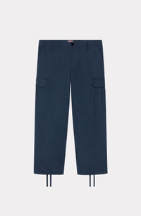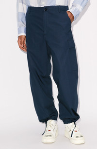 These KENZO Paris cargo trousers, inspired by the popular baggy style from the 90s, both modernize and elevate the world of streetwear fashion. Between their high-quality fabric and refined cut, they are the perfect starting block for putting together striking modern looks. Cargo trousers. 2 pockets on the sides. Large pockets on the legs, with hidden button fastening and KENZO Paris jacron. Drawstrings at the waistband and cuffs. Zip and button fastening. COMPOSITION & CARE Made in Romania 100% cotton