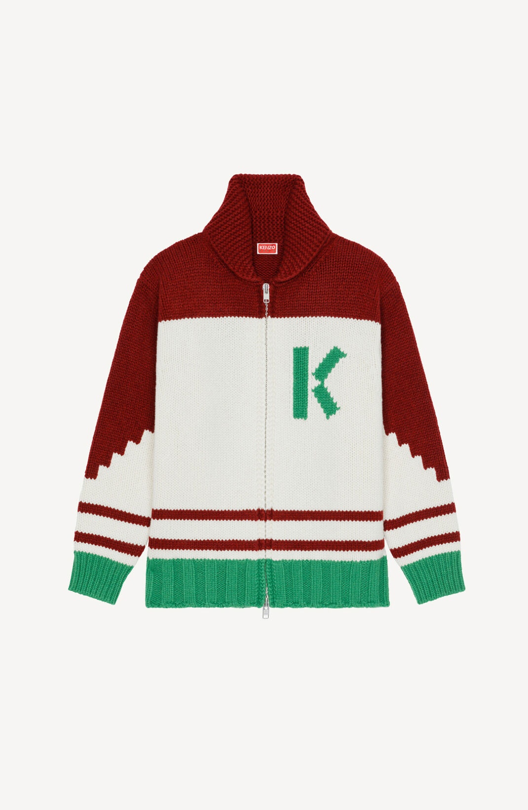 This cardigan is the perfect example of Nigo's fashion insight and transposes sportswear influences to a classic garment. American university style combines with Japanese influences thanks to the XL poppy pattern on the back. Merino wool cardigan. Long sleeves with fitted cuffs. Raised neckline. Jacquard K logo on the chest. Jacquard 'KENZO Poppy' motif on the back. Ribbed hem. Front zip fastening. SIZE & FIT The model is 188 cm tall and wears a size M. COMPOSITION & CARE Made in Italy 100% wool