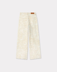 'KENZO by Verdy' embroidered buggy jeans in japanese denim. KENZO Paris leather jacron on the back. KENZO Paris button. Mount Fuji back pocket topstitching. Kuroki Japanese denim. One front ticket pocket. Two side pockets. Two back pockets. Product Reference: FF55DP4196W1.WM SIZE & FIT The model is 185 cm tall and is wearing a size M. Relax fit. Leg length at 111 cm. COMPOSITION & CARE Made in Portugal 100% cotton Do not bleach Mild professional dry-cleaning in: hydrocarbons Iron at low temperature Line drying in the shade Do not tumble dry Do not wash Do not wet-clean