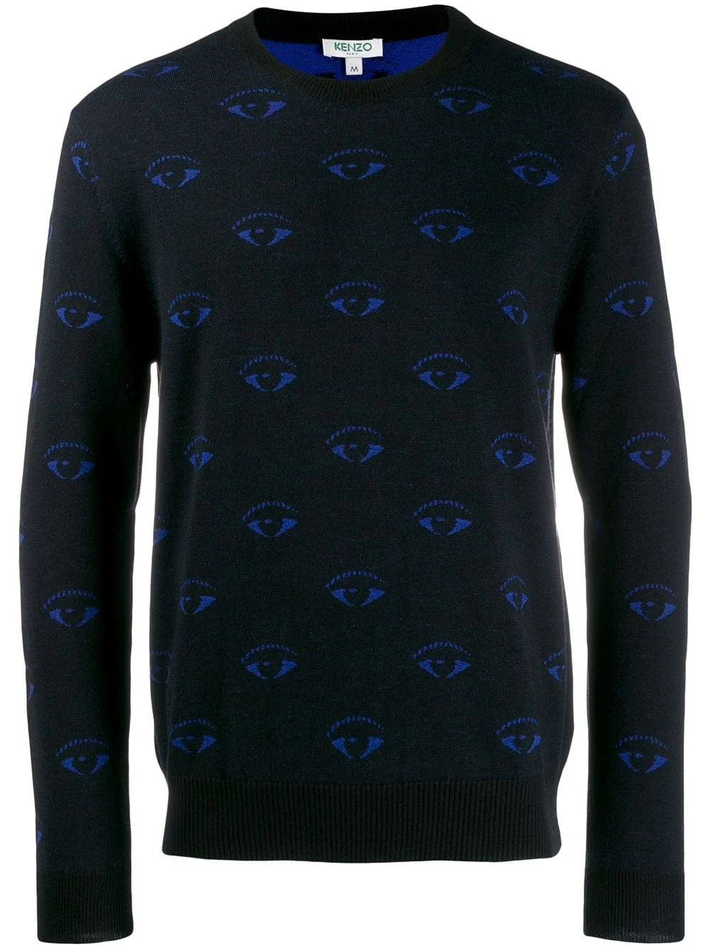 eye pattern jumper Kenzo embodies Parisian-cool with sharp silhouettes and a punchy colour palette. This black wool blend eye pattern jumper features a ribbed round neck, a relaxed fit, a ribbed hem, long sleeves and ribbed cuffs. Imported Composition Wool 55%, Cotton 45% SIZE & FIT Model measurements Height 6 ft 2 in(1.89 m) Bust/Chest 36.22 in(92 cm) Hips 35.82 in(91 cm) Waist 28.74 in(73 cm) FittingInformation This piece fits true to size. We recommend you get your regular size Cut for a relaxed fit Washing instructions Hand Wash