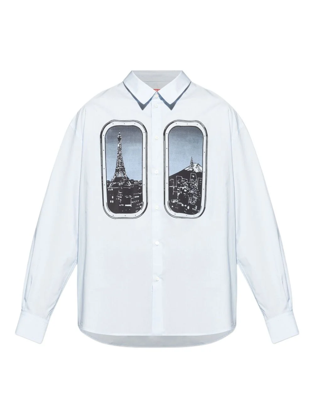 graphic-print shirt Highlights - Light blue - Graphic print - Button fastening - Long sleeves - Buttoned cuffs - Pointed collar Imported Composition Cotton 100% Washing instructions Read Manufacturer Guidelines