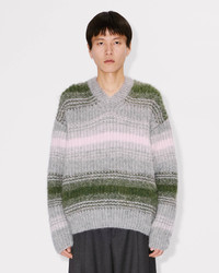 'KENZO Speed Stripe' jumper. Alpaca wool blend. V-neck jumper. Comfort fit with dropped shoulders. V-neck collar. Knitted ‘KENZO label’ sewn on the back below the collar. Product Reference: FF65PU7423CG.93 SIZE & FIT The male model is 185 cm tall and is wearing size M. COMPOSITION & CARE Made in Bulgaria 58% alpaca, 42% polyamide Mild professional dry-cleaning in: hydrocarbons Flat drying in the shade Do not tumble dry Very mild professional wet-cleaning