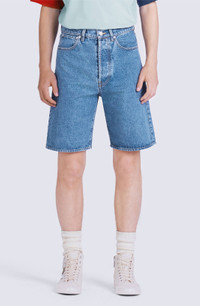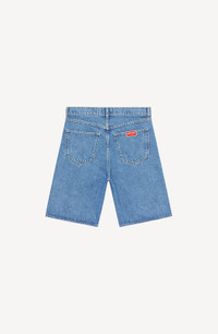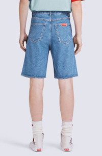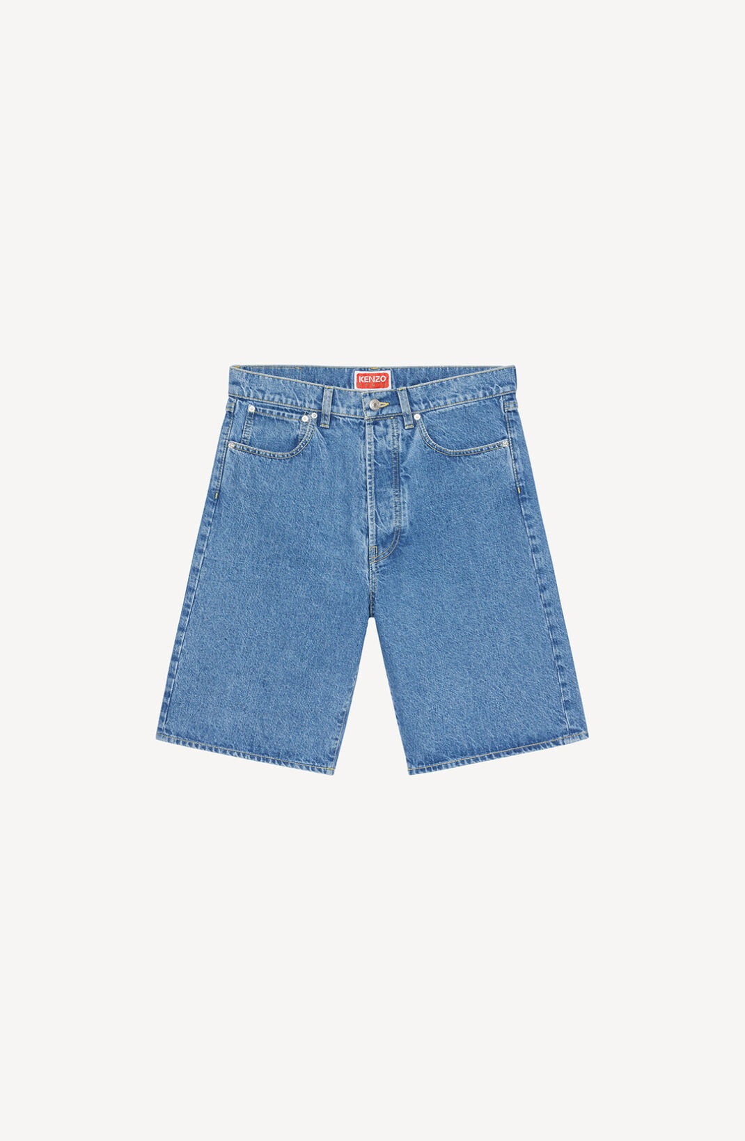 These shorts are the perfect example of an authentic retro garment and are easy to wear with all your wardrobe favourites. The classic straight cut and five-pocket design is also practical and comfortable. Straight denim shorts. Knee-length, mid-rise waist. Belt loops. 3 side pockets and 2 back patch pockets. KENZO Paris jacron at back. Zip and button fastening. SIZE & FIT Straight fit. Mid-rise waist. Knee length. Length: 56 cm. The model is 186 cm tall and wears a size 30. COMPOSITION & CARE Made in Tunisia 100% cotton