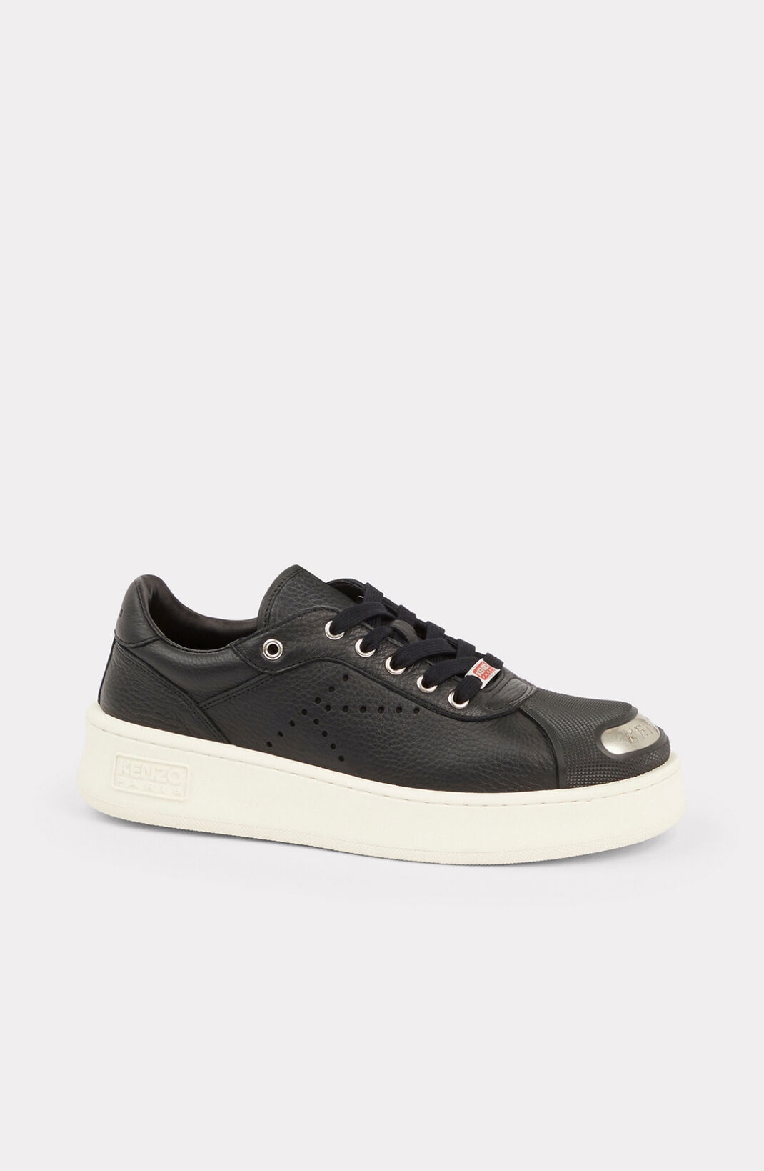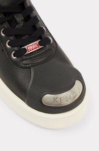 Nigo has combined styles for these trainers by offering them the protective toes of work boots. The metallic plate boasts the KENZO logo and adds a unique touch. The openwork K logo at the side enhances the leather. Leather trainers. Metallic insert with KENZO logo at toe. Openwork K logo at side. Embroidered KENZO and PARIS inscriptions on back tab. Embossed KENZO Paris logo on sole. Leather lining. 4 cm rubber sole. Lace-up fastening with metallic KENZO Paris label. SIZE & FIT Height of sole: 4 cm. This model has a normal fit so choose your usual size. For half sizes, choose the size above. COMPOSITION & CARE Made in Portugal 100% cow leather
