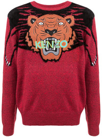intarsia tiger sweater Kenzo embodies Parisian-cool with sharp silhouettes and a punchy colour palette. This red cotton-wool-mohair blend intarsia tiger sweater from Kenzo features a ribbed crew neck, long sleeves, a ribbed hem and cuffs and a straight hem. Imported Composition Acrylic 37%, Polyamide 29%, Cotton 12%, Wool 5%, Polyester 5%, Mohair 5% SIZE & FIT Model measurements Height 6 ft 2 in(1.88 m) Bust/Chest 38.18 in(97 cm) Hips 37 in(94 cm) Waist 29.92 in(76 cm) Washing instructions Hand Wash