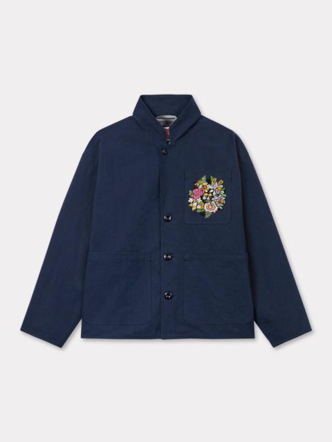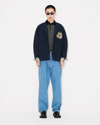 'KENZO by Verdy' embroidered workwear jacket. Embroidery made in India. Contrasted KENZO Paris label on the back neck. Button on the collar. Buttoned cuffs. One chest pocket. Two front pockets. Product Reference: FF55VE2319GV.79 SIZE & FIT The model is 185 cm tall and is wearing a size M. Boxy fit. Back length at 70 cm. COMPOSITION & CARE Made in Romania 86% cotton, 14% polyester, 10% other fibers Do not bleach Mild professional dry-cleaning in: hydrocarbons Iron at low temperature Line drying in the shade Do not tumble dry Do not wash Do not wet-clean