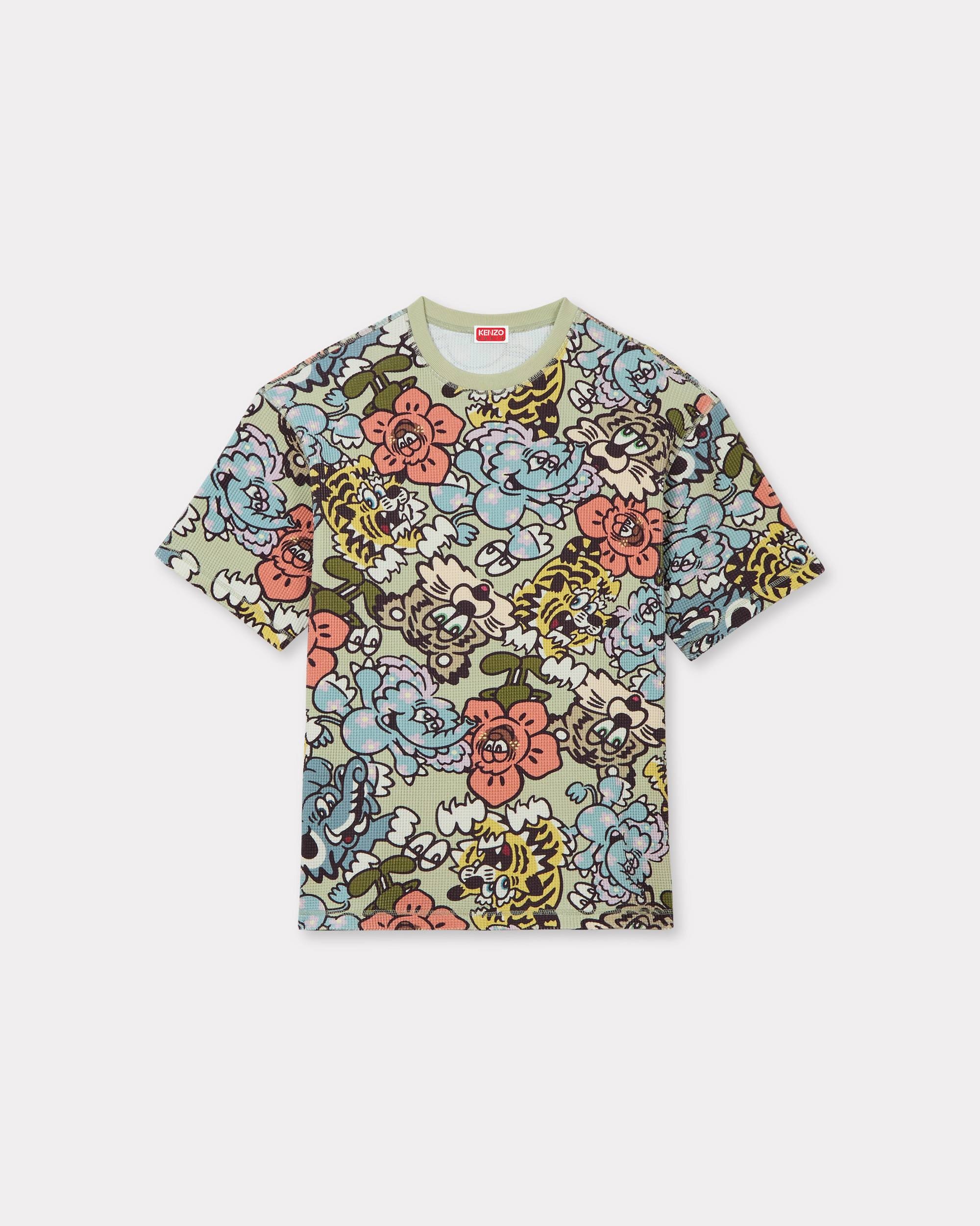 'KENZO by Verdy' oversized T-shirt. Light Waffle Molleton. All-over print. Product Reference: FF55TS4934WD.MU SIZE & FIT The model is 185 cm tall and is wearing a size M. Oversize fit. COMPOSITION & CARE Made in Portugal 100% cotton Do not bleach Do not dry-clean Iron at low temperature Line drying in the shade Do not tumble dry 30°C mild fine wash Mild professional wet-cleaning