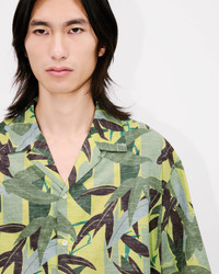 This short-sleeved Hawaiian shirt features a 'KENZO CHIKU-RIN CAMO' print inspired by the bamboo in the 1975 Kenzo Takada 'JUNGLE JAP' collection archives. The knife-pleat back design of this shirt gives it a sophisticated look. Hawaiian short sleeve shirt. 'KENZO Chiky-Rin Camo' allover print. Pleated back. Button fastening on the collar. Product Reference: FF55CH1309P1.45 SIZE & FIT The model is 185 cm tall and is wearing a size M. Relax fit. Back length at 74 cm. COMPOSITION & CARE Made in Tunisia 62% cotton, 38% linen Do not bleach Mild professional dry-cleaning in: hydrocarbons Iron at low temperature Line drying in the shade Do not tumble dry Hand wash Very mild professional wet-cleaning