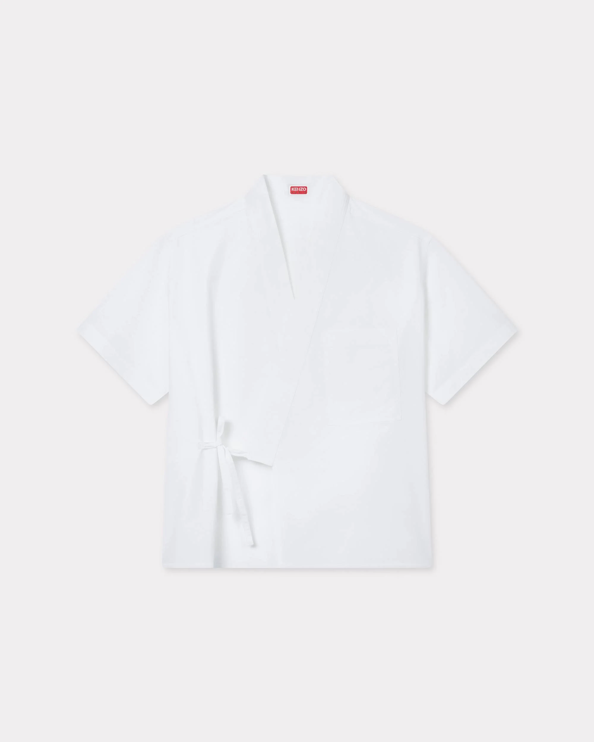 'KENZO Elephant Logo' kimono short sleeve shirt in cotton poplin