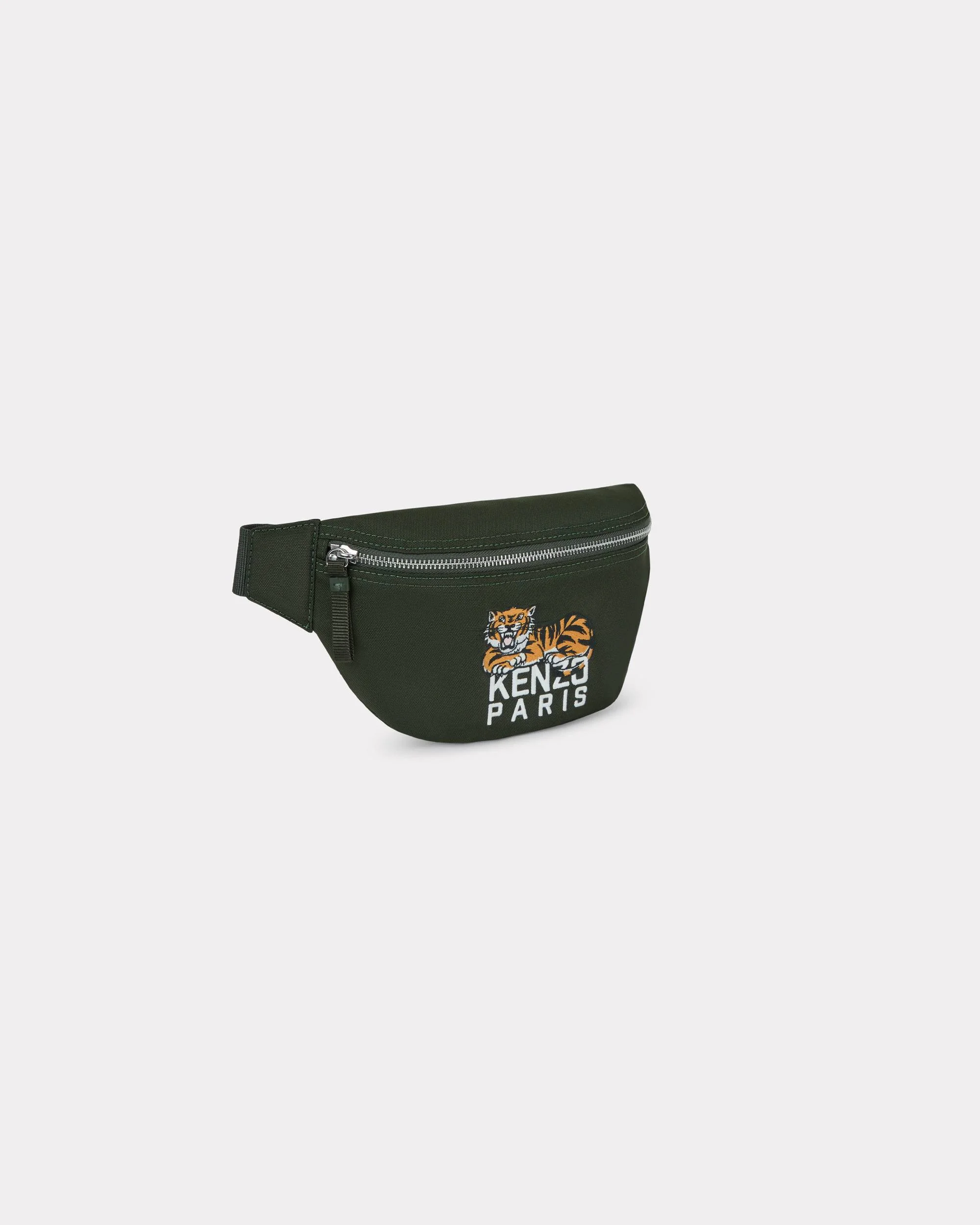 'KENZO Happy Tiger' belt bag. 'KENZO Varsity' line. Carried as a belt bag or crossbody-carried. Adjustable belt. Zip fastener. 1 inside flat pocket. Embroidered 'KENZO Happy Tiger' & 'KENZO Paris' logo. Product Reference: FF65SA607F29.51.TU SIZE & FIT Dimensions : 32 x 17 x 6 cm. Ajdustable belt. Waist size: max 140 cm. COMPOSITION & CARE Made in Vietnam 100% polyester Do not dry-clean Do not tumble dry