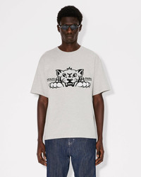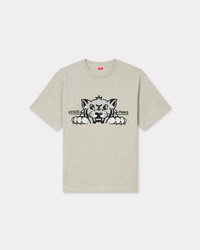 KENZO Happy Tiger' embroidered oversized T-shirt. Heavy Jersey. Front embroidery. Tonal 'KENZO Paris' branding embroidered at center back. Fusing behind the embroideries to protect the skin. Product Reference: FF55TS5264SI.93 SIZE & FIT Oversize fit. The model is 185 cm tall and is wearing size M. COMPOSITION & CARE Made in Portugal 100% cotton Do not bleach Do not dry-clean Iron at low temperature Line drying in the shade Do not tumble dry 30°C mild fine wash Mild professional wet-cleaning