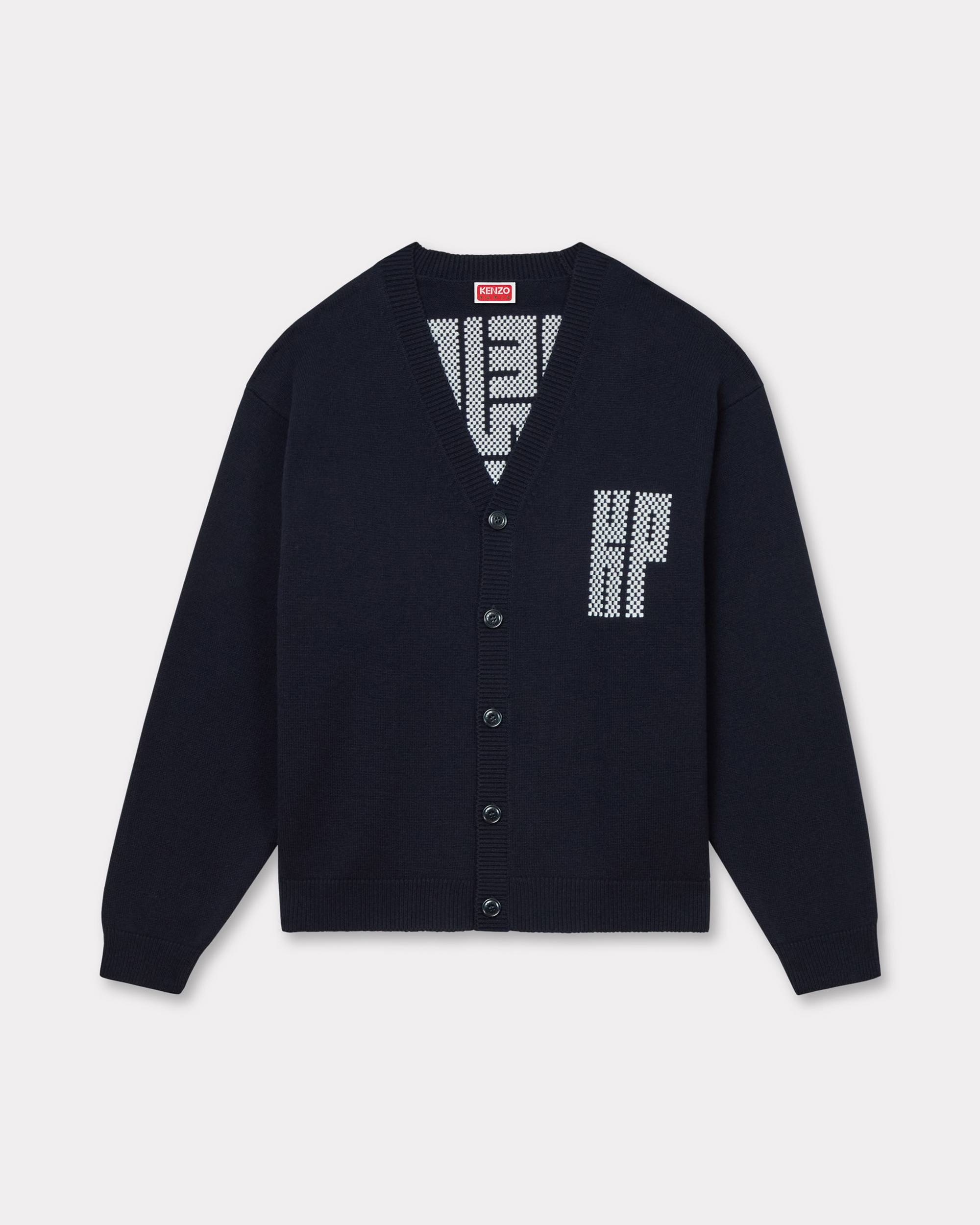 'KENZO Kamon' embroidered cardigan in wool and cotton