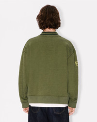 'KENZO Paris Chainstitch' embroidered cardigan. Soft Stretch Unbrushed Molleton. V-neck cardigan. Rib at hem, on the button placket and at cuff. Contrasted stripe on the button placket. Front pockets. Chainstitch ‘KENZO Paris’ embroidery on the chest and ‘70’ on the sleeve. Product Reference: FF65CA5504MO.50 SIZE & FIT The male model is 185 cm tall and is wearing size M. COMPOSITION & CARE Made in Portugal 100% cotton Do not bleach Flat drying in the shade Do not tumble dry