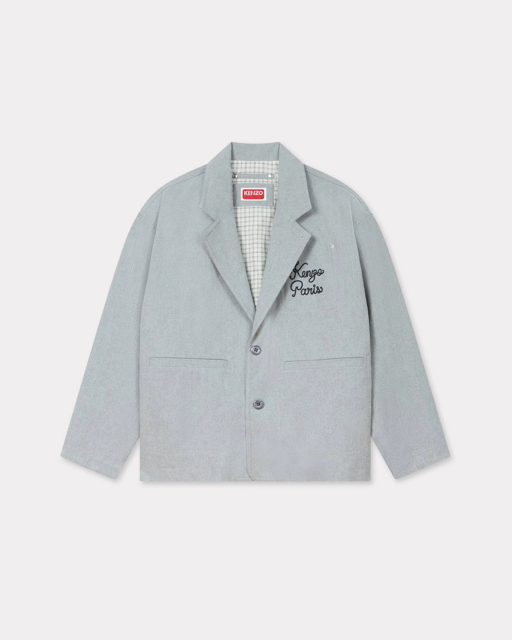 'KENZO Paris Chainstitch' embroidered workwear jacket. Polyester Cotton. Lined. Collar button offering two way to wear it. Buttoned cuffs. Two front pockets. Chain stitch embroidery. Product Reference: FF65VE2359GV.93 SIZE & FIT The model is 185 cm tall and is wearing size M. Back length at 70 cm. Boxy fit. COMPOSITION & CARE Made in Romania 65% cotton, 25% polyester, 10% other fibers Do not bleach Iron at low temperature Line drying in the shade Do not tumble dry Do not wet-clean