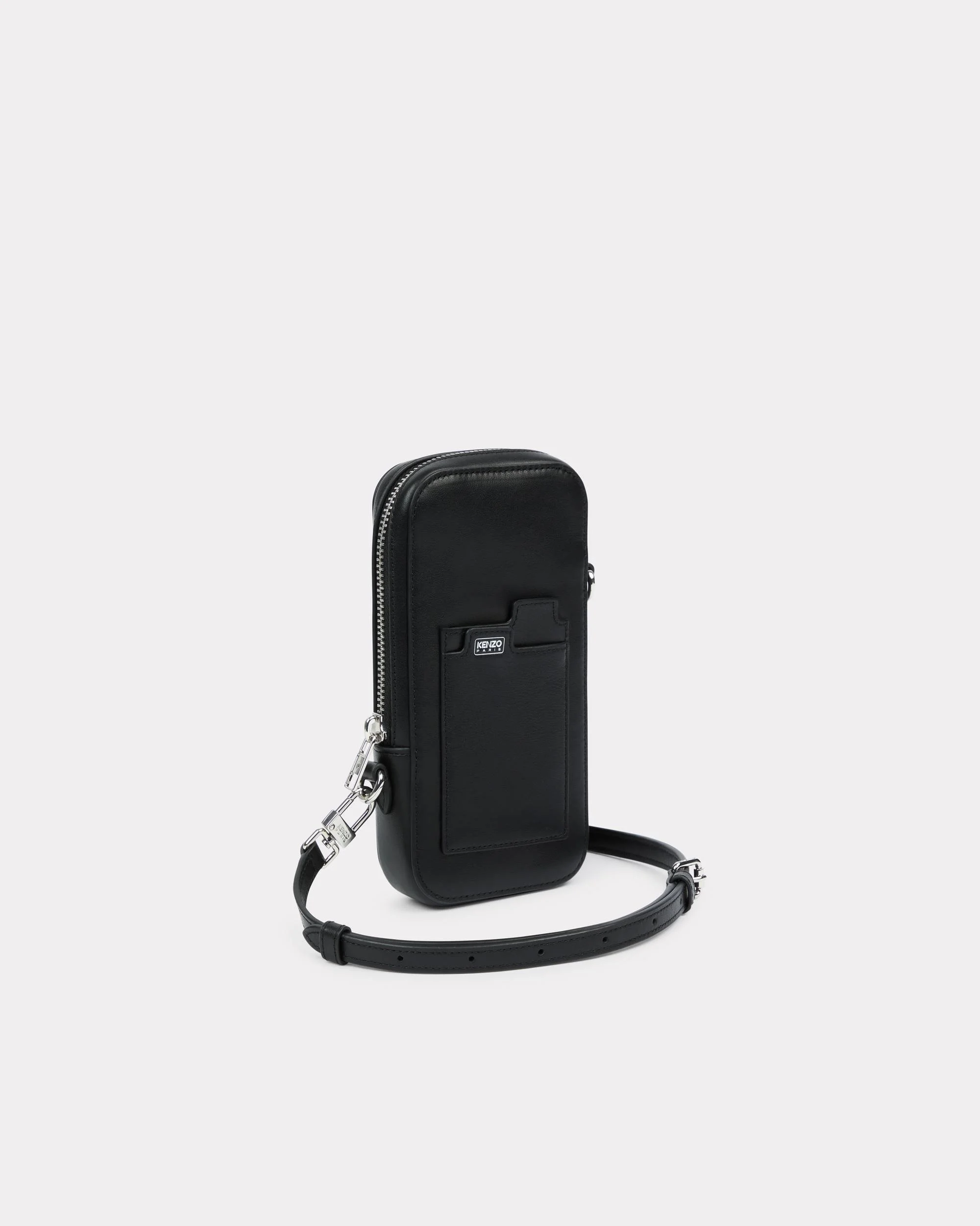 'KENZO Tab' phone holder in leather. Crossbody-carried or shoulder-carried. Adjustable and detachable strap. Zip fastener. 2 outside card slots on the front. 1 outside card slot on the back. 1 inside card slot. Small 'KENZO Paris' logo. Product Reference: FF68PM808L40.99.TU SIZE & FIT Dimensions : 10 x 18.5 x 3.5 cm. Adjustable and detachable strap. Strap drop length: 50 cm. COMPOSITION & CARE Made in Vietnam 100% cow leather Do not bleach Do not dry-clean Do not iron Do not dry Do not tumble dry Do not wash Do not wet-clean