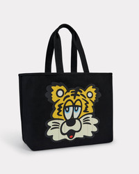 KENZO Utility' reversible large tote bag in canvas. Reversible. 1 flat pocket. 2 handles. Kenzo x Verdy Collection. SIDE A: printed graphic on the front, printed Kenzo Paris logo on the back. SIDE B: solid on the front, embroidered patch with Kenzo Paris logo on the back. Shoulder-carried or hand-carried. Product Reference: FF58SA911F35.99.TU SIZE & FIT Dimensions : 47 x 35 x 14cm. Handles drop length: 22 cm. COMPOSITION & CARE Made in China 100% cotton Do not bleach Do not dry-clean Do not iron Do not dry Do not tumble dry Do not wash Do not wet-clean