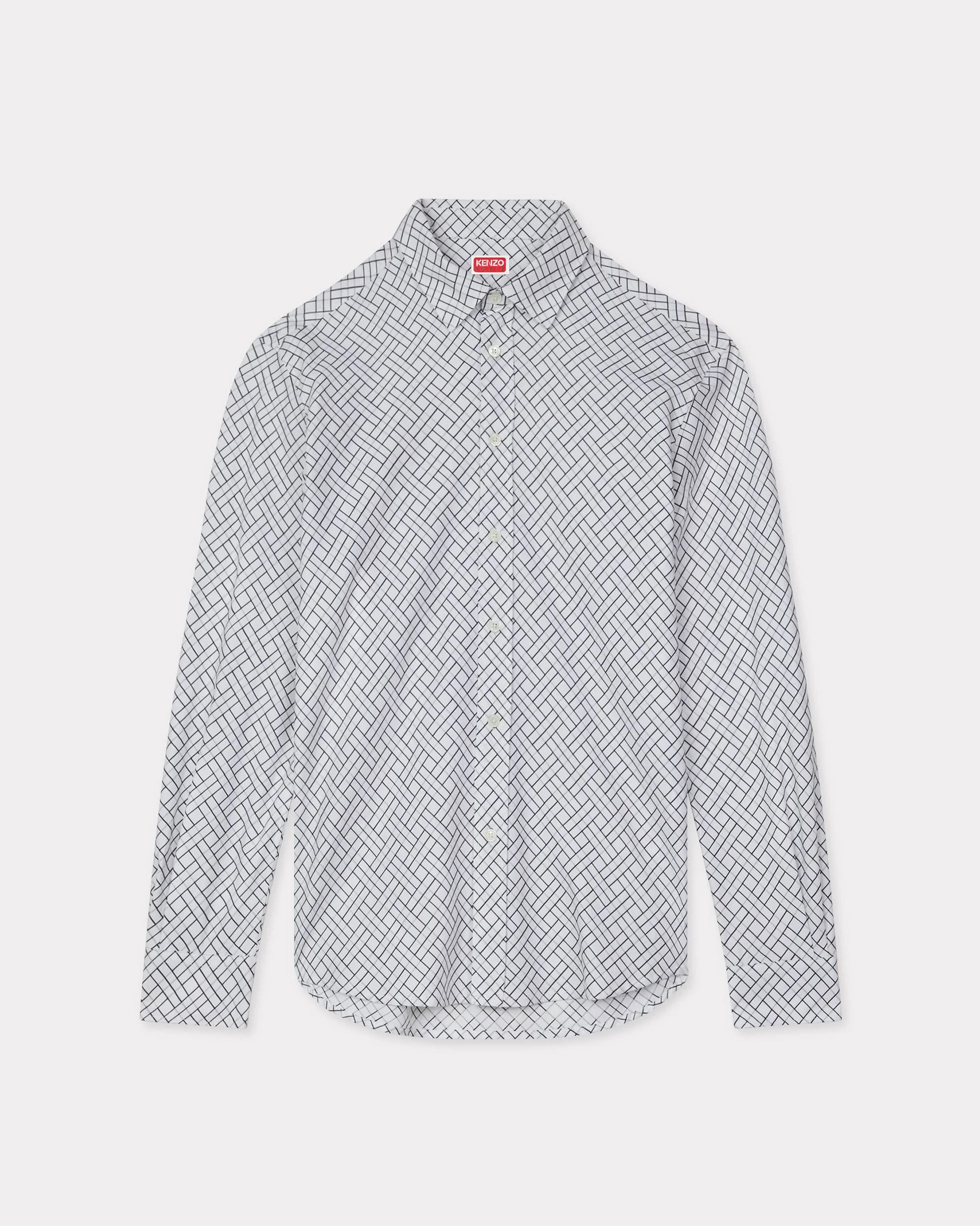 'KENZO Weave' regular shirt. Cotton. Diagonal 'KENZO Weave' allover jacquard. Contrasted 'KENZO Paris' embroidery on the back neck. Product Reference: FF65CH4029JD.01 SIZE & FIT The model is 185 cm tall and is wearing size 39. Back length at 80 cm. Casual fit. COMPOSITION & CARE Made in Tunisia 100% cotton Hand wash