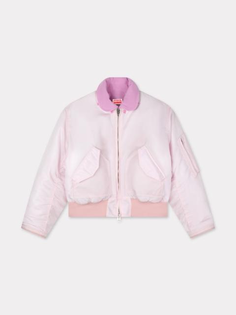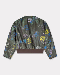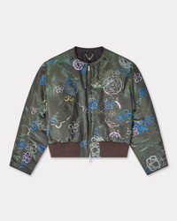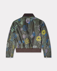 This bomber is embellished with one of the iconic prints from Kenzo's collaboration with artist Futura 2000. The piece has a vintage silhouette, and can also be worn in a more contemporary style thanks to its detachable moleskin collar. 'Kenzo x Futura 2000' bomber. Recycled polyamide. Two front pockets. One gusset pocket on left sleeve. Two inside pockets. Detachable moleskin collar. Zipped cuffs. 'Boke Flower' chain hanger loop. Bottom rib. Product Reference: FF65BL2029G1.51 SIZE & FIT The male model is 185 cm tall and is wearing size M. Back length at 63,5 cm. Boxy fit. COMPOSITION & CARE Made in Madagascar 69% cupro, 31% polyester Do not bleach Mild professional dry-cleaning in: hydrocarbons Iron at low temperature Line drying in the shade Do not wash Do not wet-clean
