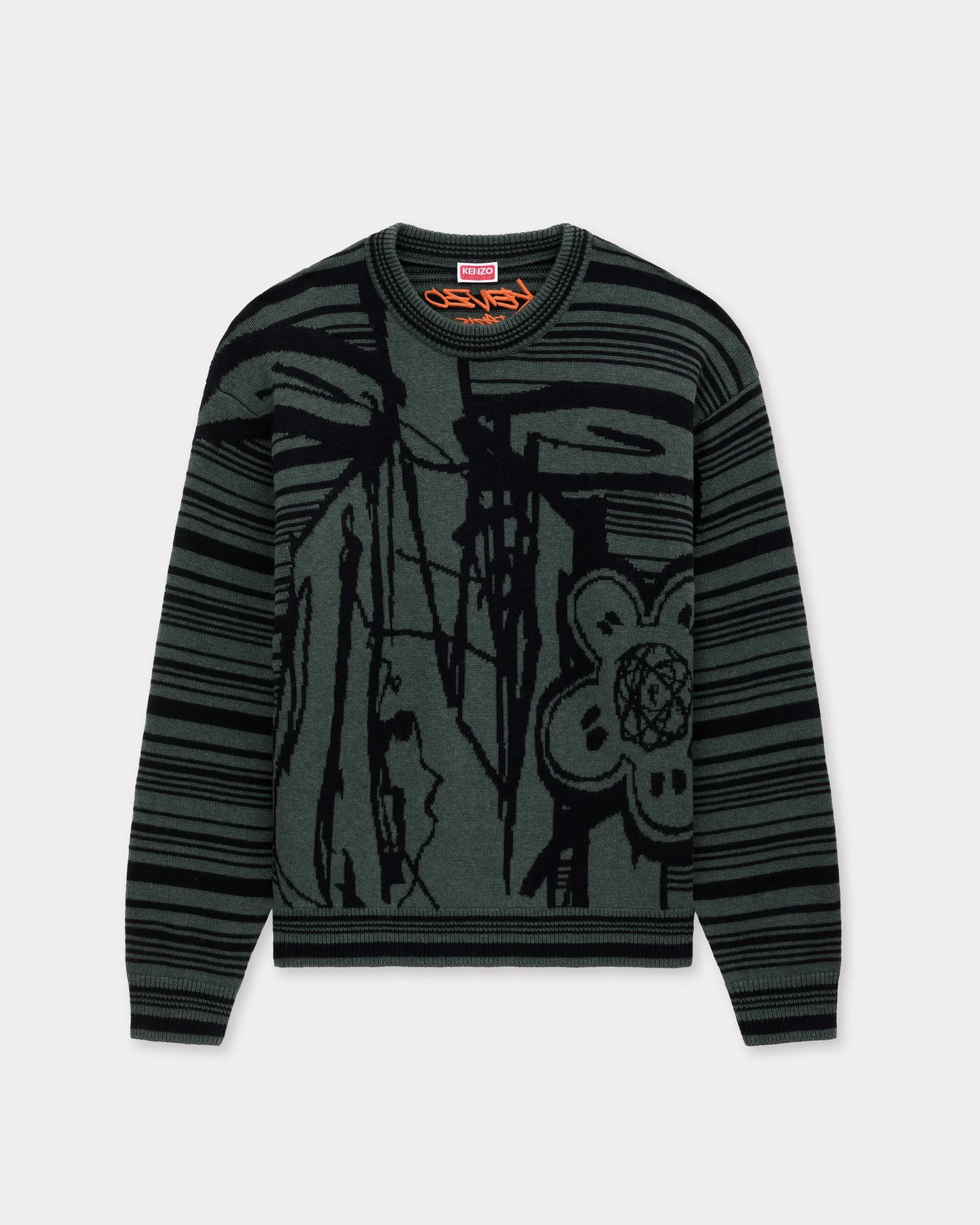 This jumper celebrates the unique collaboration between Kenzo and Futura 2000, and features a large motif on the front that combines the brand's signature Boke Flower and Pointman, the artist's iconic character. Made from wool and cotton, its classic cut is enhanced by a blend of an intarsia knit and embroidered details. The piece also features the artist's graffiti-style reinterpretation of the 'Kenzo Paris' logo. 'Kenzo x Futura 2000' jumper. Wool cotton. Round neck collar. Product Reference: FF65PU7353BO.51 SIZE & FIT The model is 185 cm tall and is wearing size M. Classic fit. COMPOSITION & CARE Made in China 55% wool, 45% cotton Do not bleach Do not dry-clean Iron at low temperature Flat drying in the shade Do not tumble dry 30°C very mild fine wash Very mild professional wet-cleaning