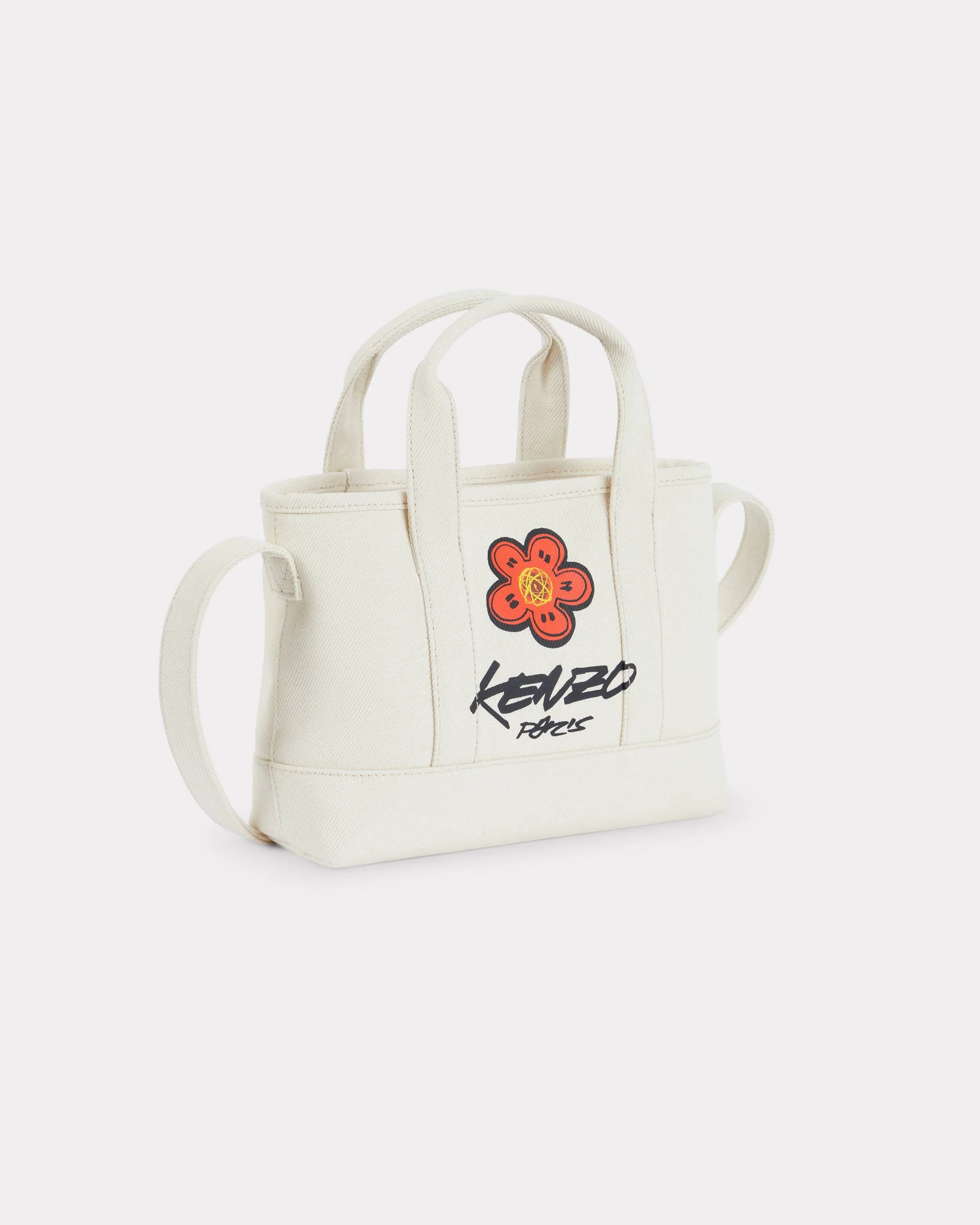 'Kenzo x Futura 2000' small tote bag 'Kenzo Utility' in canvas. Crossbody-carried or hand-carried. 'Kenzo x Futura 2000' collection. Strap. 2 handles. Hook. 1 inside card case. Printed' Boke Flower' underlined with 'Kenzo Paris' on the front. Printed 18 rue Vivienne Paris on the back. Product Reference: FF68SA910F36.03.TU SIZE & FIT Dimensions: 18,3 x 25.5 x 8 cm. Strap drop length: 56 cm middle hole. Handles drop length: 10 cm. COMPOSITION & CARE Made in China 100% cotton Do not iron