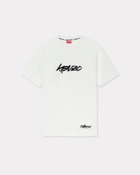 'Kenzo x Futura 2000' T-shirt. Light Jersey. Printed graphism ‘Kenzo Paris’ & ’18 Rue Vivienne’ with a graffiti typography tying back to Futura 2000’s art. Woven label sewn on the back below the collar. Branded neck tape ‘Kenzo Paris’. Product Reference: FF65TS2524SG.02 SIZE & FIT The model is 185 cm tall and is wearing size M. Classic fit. COMPOSITION & CARE Made in Portugal 100% cotton Do not bleach 30°C very mild fine wash