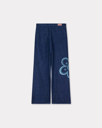 As seen on the FW25 catwalk, these wide-leg jeans are a key element in the collaboration between Kenzo and artist Futura 2000. This piece is made from denim finished using the 'punch needle' technique to create 3D stripes that add texture and depth. 'Kenzo x Futura 2000' turn up wide fit jeans. Punch needle rinse denim. Kaihara Japanese denim Relax fit. One front ticket pocket. Two side pockets. Two back pockets. Printed & embroidered. Contrasted topstitching. Contrasted ‘Kenzo Paris’ reworked by Futura 2000 on the back belt. Product Reference: FF65DP4216R1.DM SIZE & FIT The male model is 185 cm tall and is wearing size M. Leg length at 118cm, hem recommended length is 11cm. Relax fit. COMPOSITION & CARE Made in Portugal 100% cotton Do not bleach Line drying in the shade Do not tumble dry 30°C very mild fine wash Very mild professional wet-cleaning