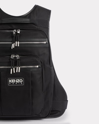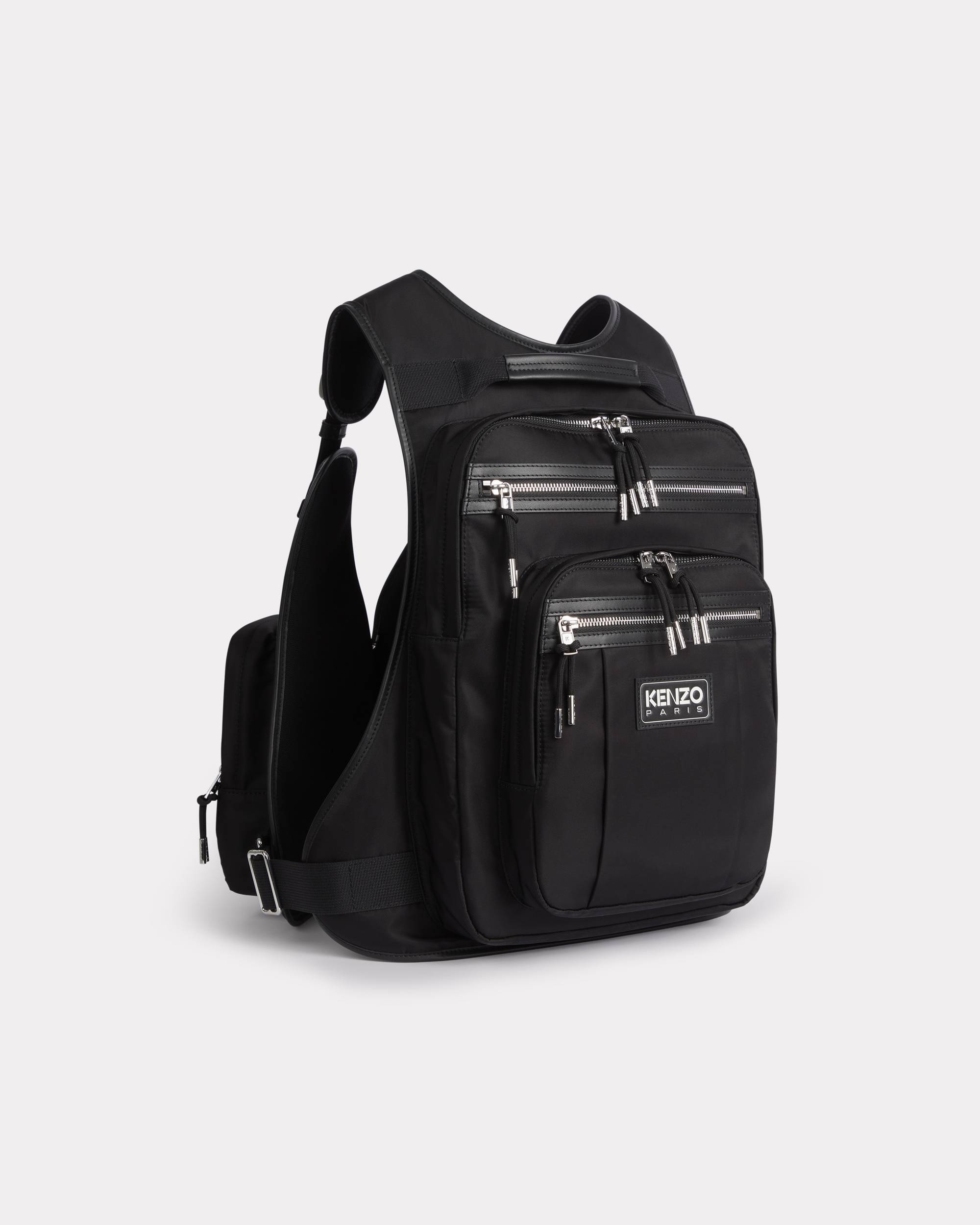 'KENZOGRAPHY' vest backpack. Top handle renforced with leather pad. Adjustable shoulder straps. Ajustable Fitting. Zip fastener. Front: 2 flat pockets, 2 wide pockets. Back: 2 flat pockets, 1 wide pocket, 1 main compartment with a large inside computer compartment pocket. Leather patch with printed and embossed KENZO Paris logo. Carried as a backpack. Product Reference: FE65SA113B10.99.TU SIZE & FIT Dimensions : 36 x 52 x 19 cm. COMPOSITION & CARE Made in China 100% polyester Do not bleach Do not dry-clean Do not iron Do not dry Do not tumble dry Do not wash Do not wet-clean
