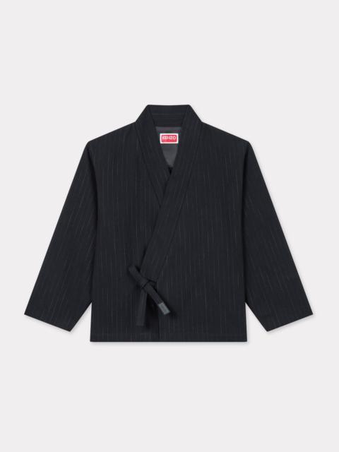 Kimono jacket. Boke flower on the back neck. 'KENZO Paris' logo on the belt closure. Half lined. One front pocket. Product Reference: FE65VE1409RE.79 SIZE & FIT Back length at 63 cm. The model is 185 cm tall and is wearing size M. COMPOSITION & CARE Made in Romania 100% virgin wool Do not bleach Mild professional dry-cleaning in: hydrocarbons Iron at low temperature Line drying in the shade Do not tumble dry Do not wash Do not wet-clean