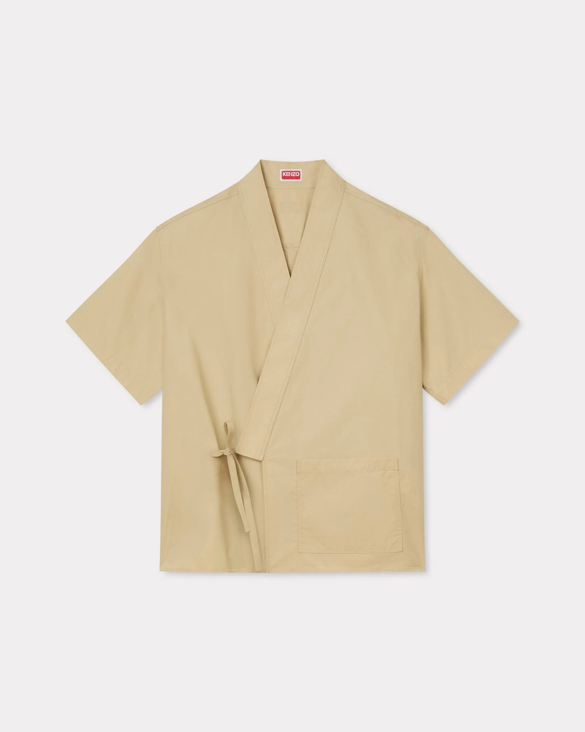 Kimono shirt in cotton ripstop. Tone on tone 'KENZO Paris' label on back neck. One bottom front pocket. Kimono closure on the front lapel. Product Reference: FF55CH1289SC.11 SIZE & FIT The model is 185 cm tall and is wearing size M. Back length at 70 cm. Relax fit. COMPOSITION & CARE Made in Tunisia 100% cotton Do not bleach Mild professional dry-cleaning in: hydrocarbons Iron at low temperature Line drying in the shade Do not tumble dry 30°C very mild fine wash Very mild professional wet-cleaning